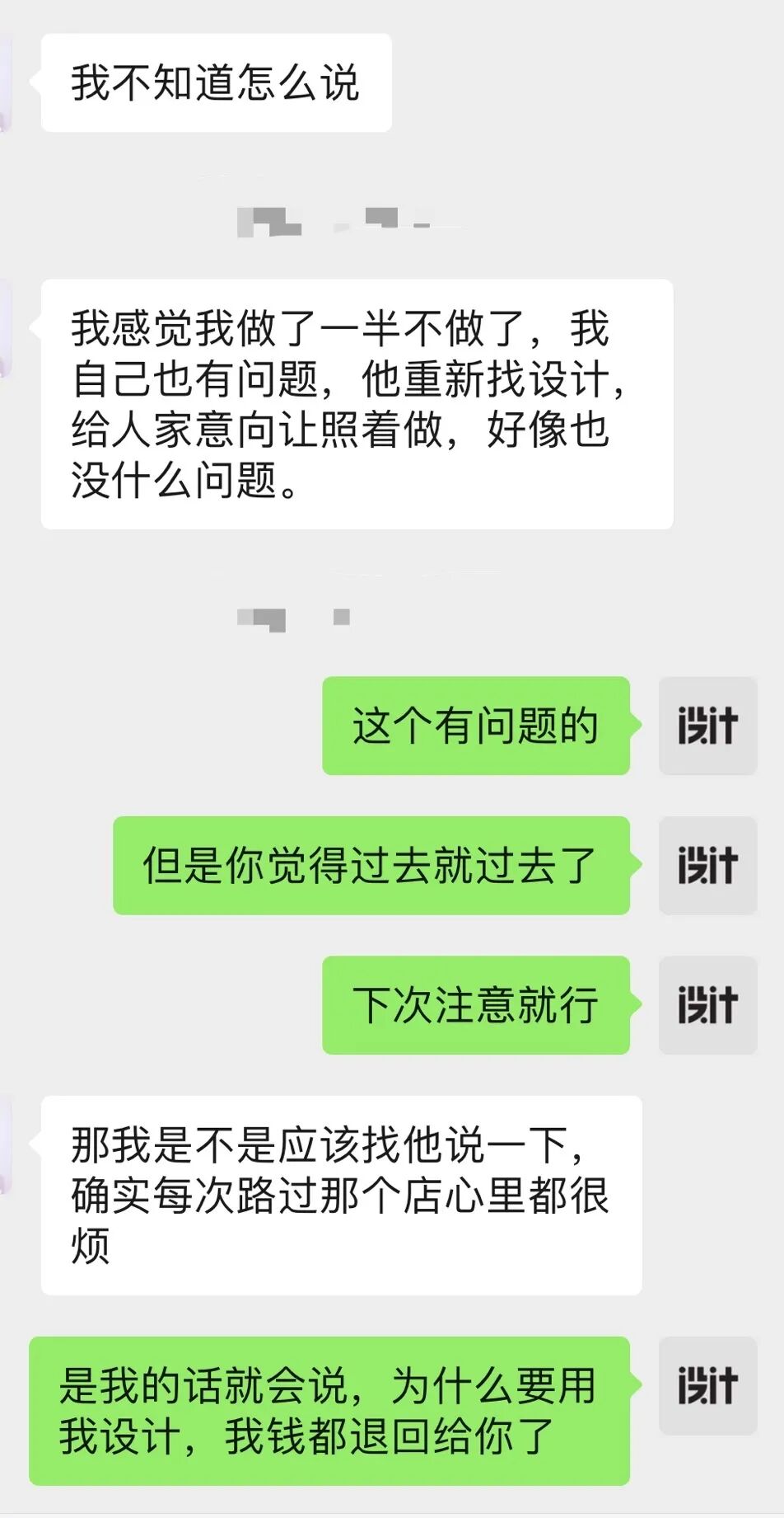还有就是这位设友知道了客户使用了自己的设计,没有第一时间去找客户协商,这里可能也是因为经验不足和性格有关系,加上本来是自己先提出中断合作的,所以就导致更加不好意思去找客户说。