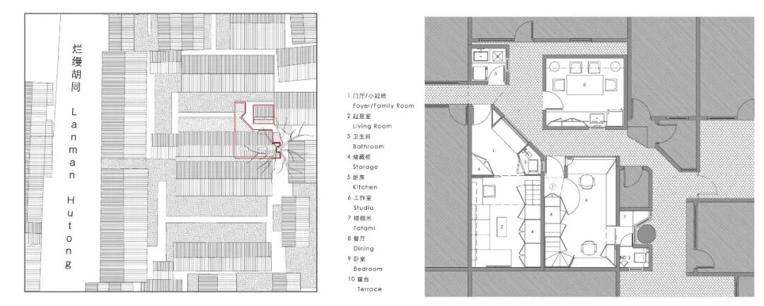 对于这条因叠加太多元素而显得没有太多特征的巷道,建筑师选择了“半开放”的建筑语言应对,将公共与私密空间在巷道的尽头相互融合。