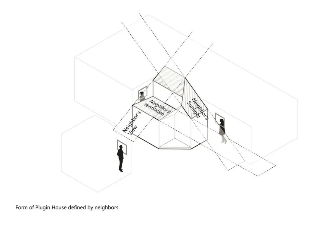 小樊家的建筑形式和复杂的邻里关系有着直接的联系:新建房屋不能影响任何方向邻居的采光、视线与通风,所以出现了不同方向的退台和斜切面。甚至在搭建过程中,邻居新的修改意见也会随时出现,但插件板可以很轻松的现场切割,这一特性使得调整都能轻易实现。