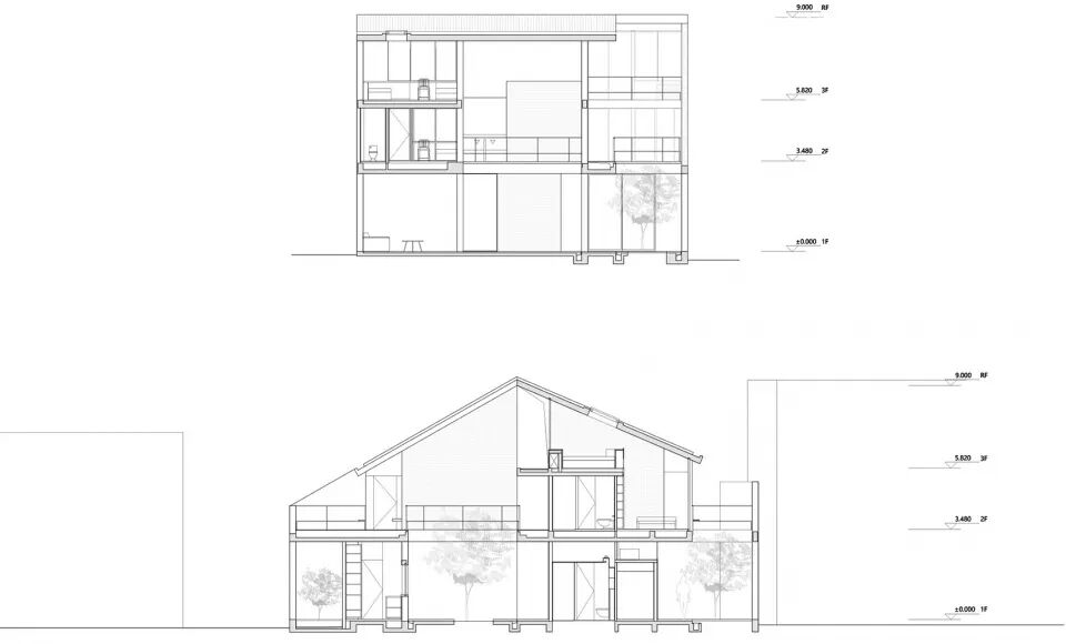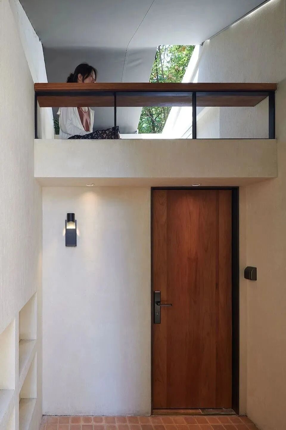二楼檐口之下,“明厅”临空处的栏杆转化为座凳,二楼卧室的落地推拉窗进一步家具化,推开窗,人可以坐在室内,脚荡在外面,栏杆变成喝茶看书的台子,这些处理手法都试图消除室内外的对立,是建筑基本元素对“深远”这一审美趣味的回应。