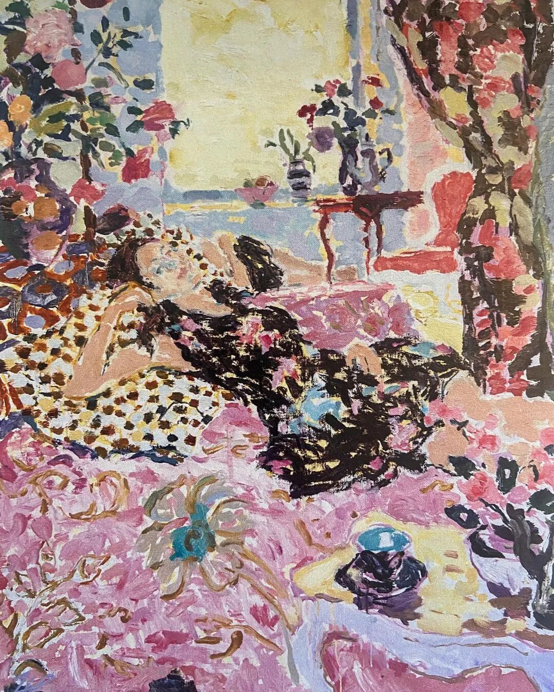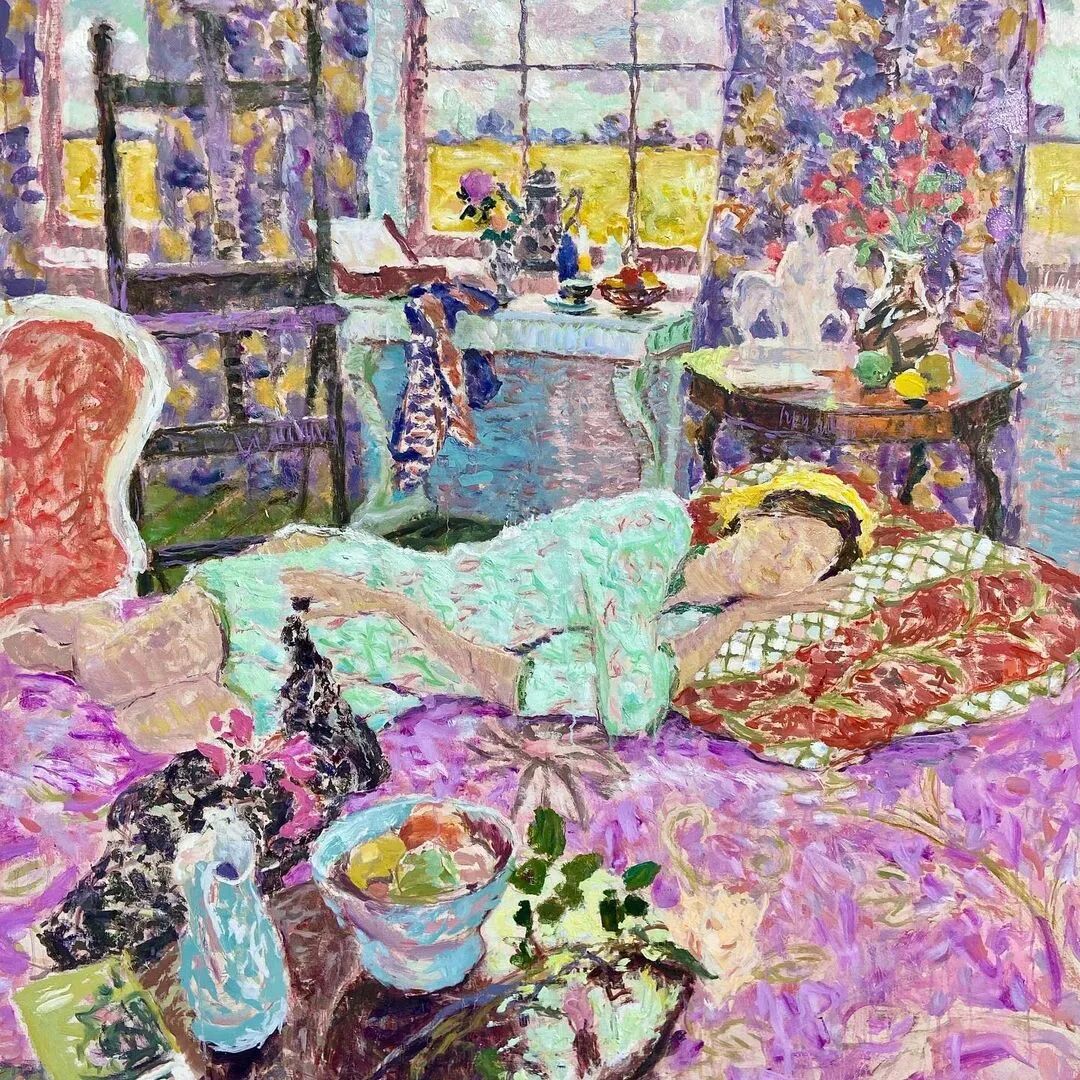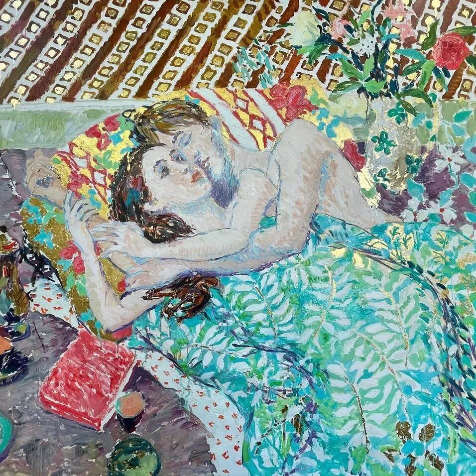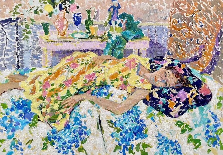 他说:“通过形状、线条、图案和颜色的排列,我试图让人联想到抒情和梦幻,一个与世隐绝的地方。静物和人物画一般并不代表一个真实的时刻,而是一个反思、回忆和再创造过程的结果,是人类经验的升华。壶中的花朵或床上的人体不属于现在,而是属于所有时间,正如色彩和光的抽象元素是永恒的,将我们连接到过去和未来,连接到可见的和看不见的世界。”