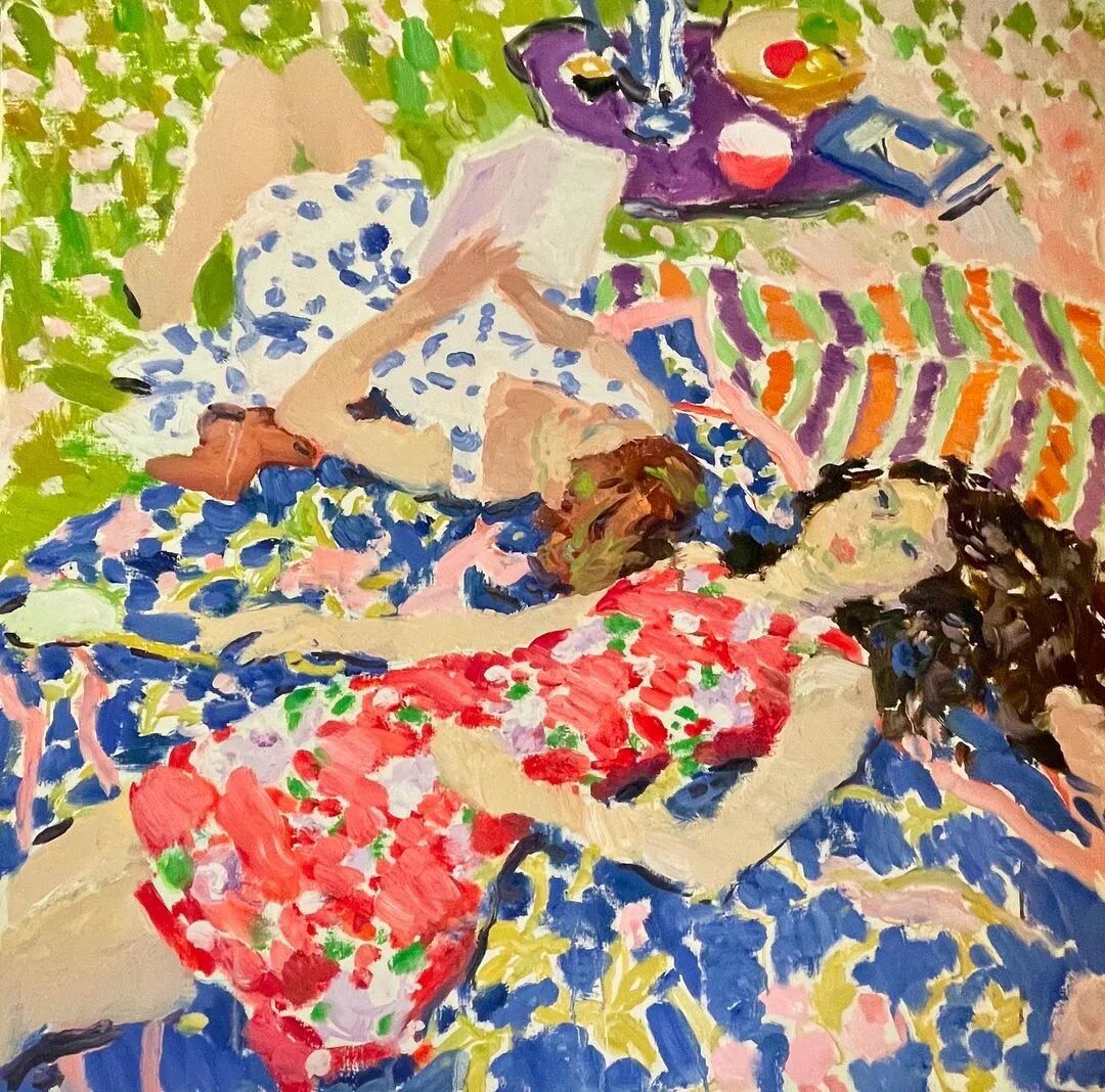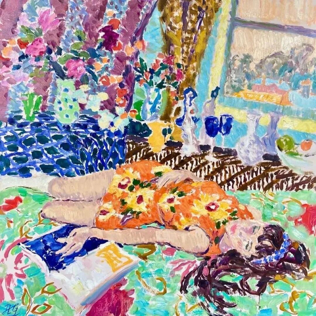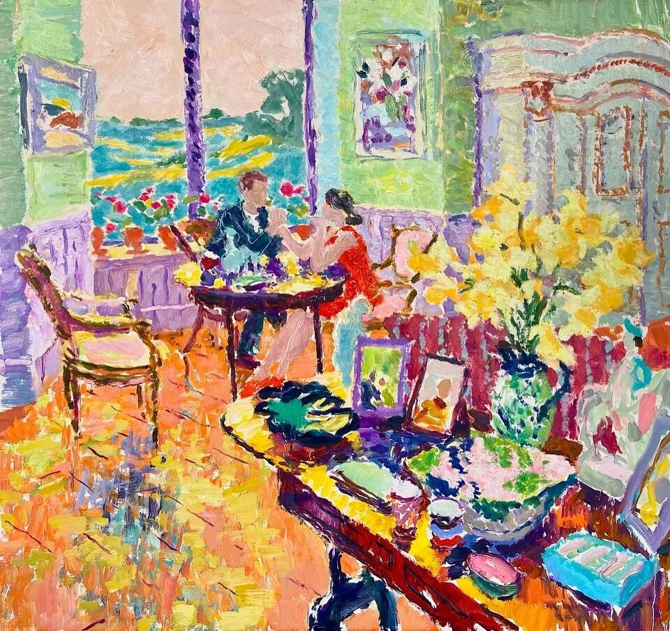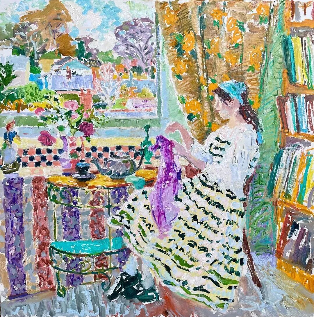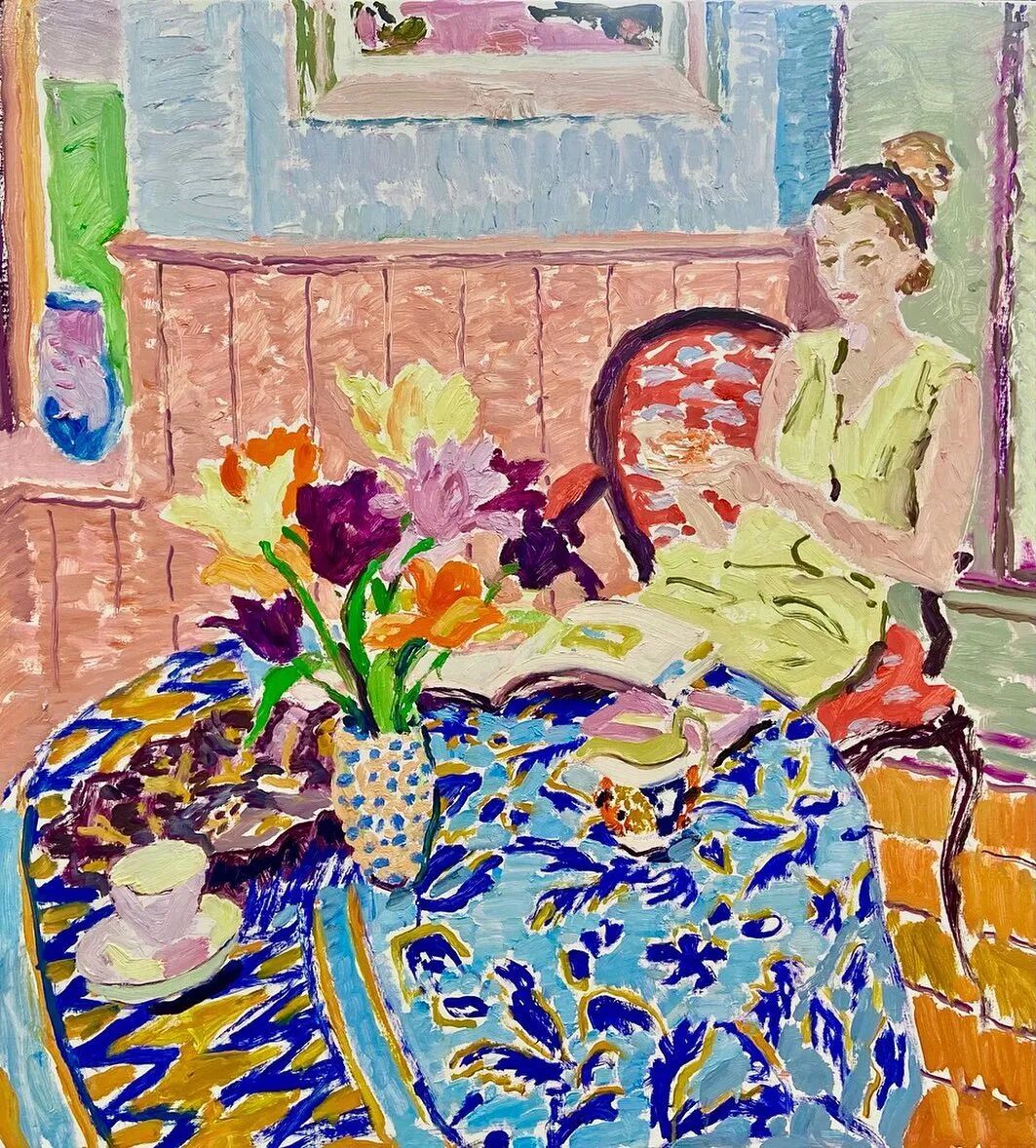 Hugo Grenville用流畅的笔触将色彩和图案融合在一起,通过对变革的认识来表达存在感。在他的画作中,人物和围绕它们的日常物品表达了他对生活、光线和色彩的喜悦,沉浸在英国浪漫主义传统中。