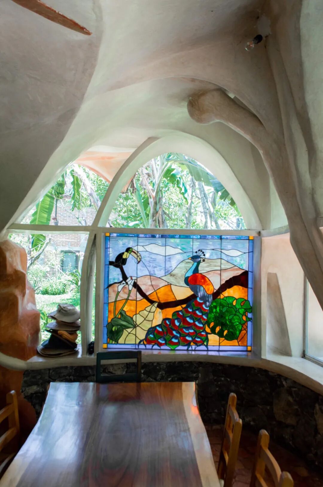 建筑的内部同样超凡脱俗,不规则的曲线拱顶,色彩绚烂的墙壁,甚至是交替的踏板楼梯。