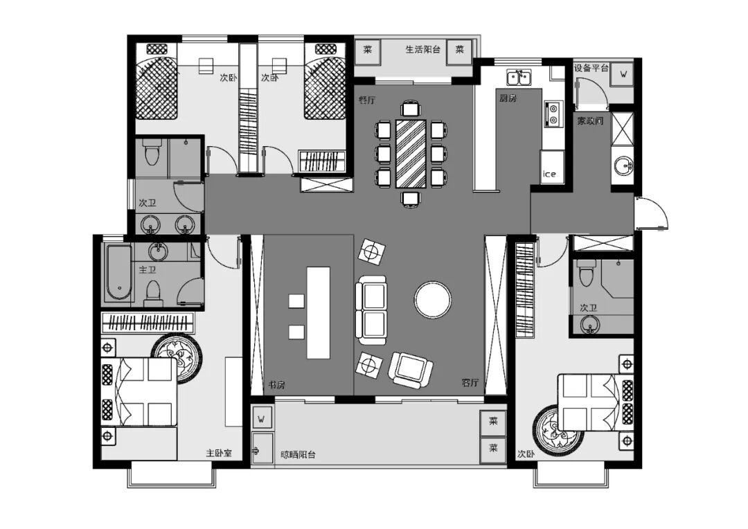 对于土豪朋友,你住的是别墅或者大平层,不在此次考虑的范围内,请自行绕道。我将这次的户型建筑面积控制在180平方以下作为设计目标。