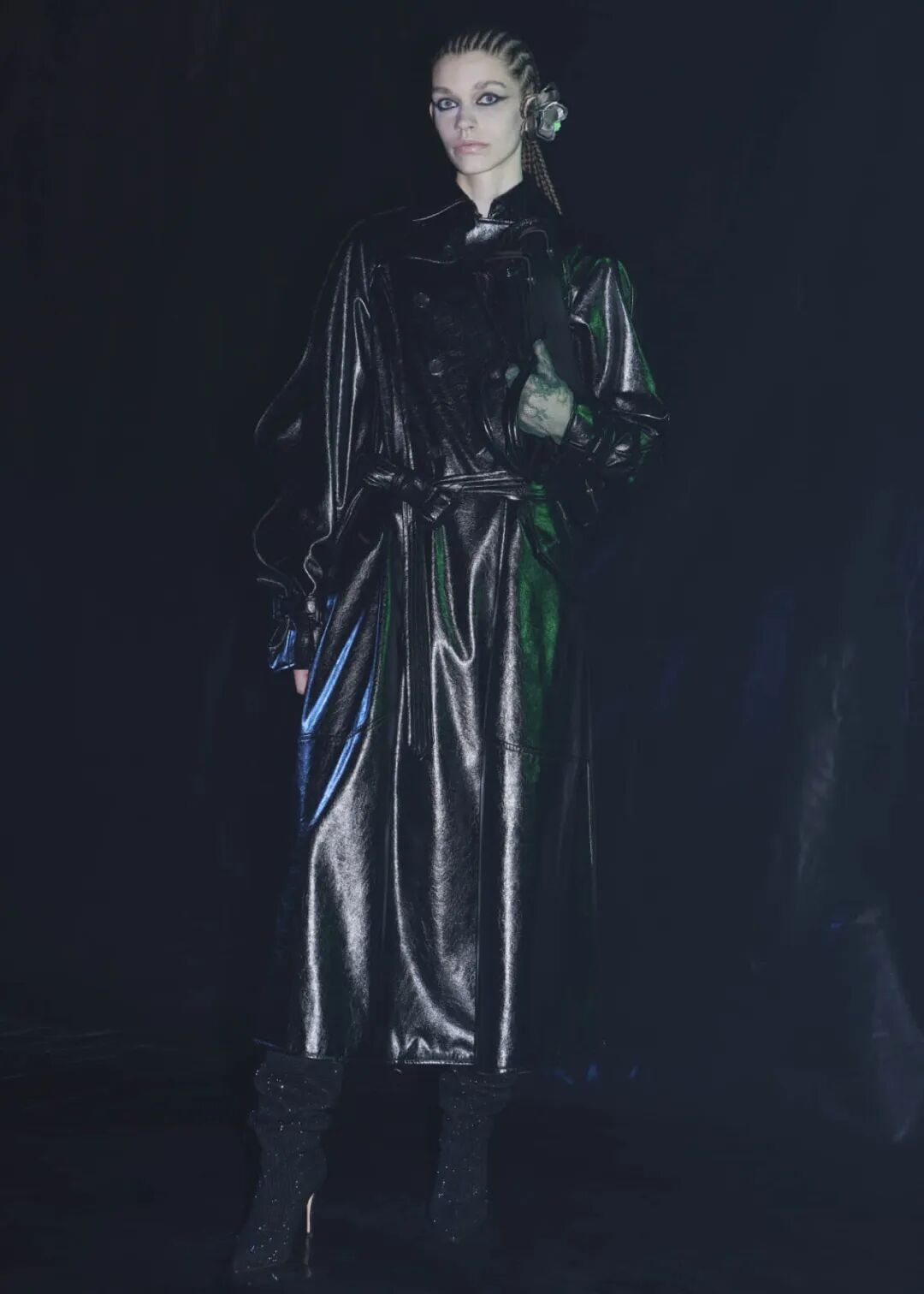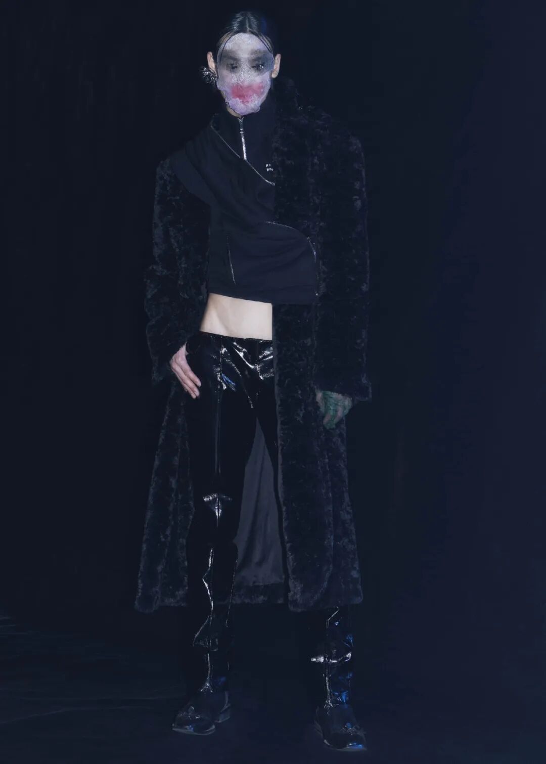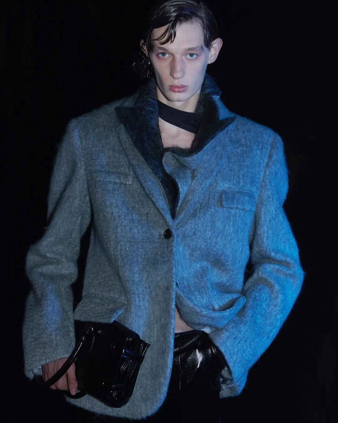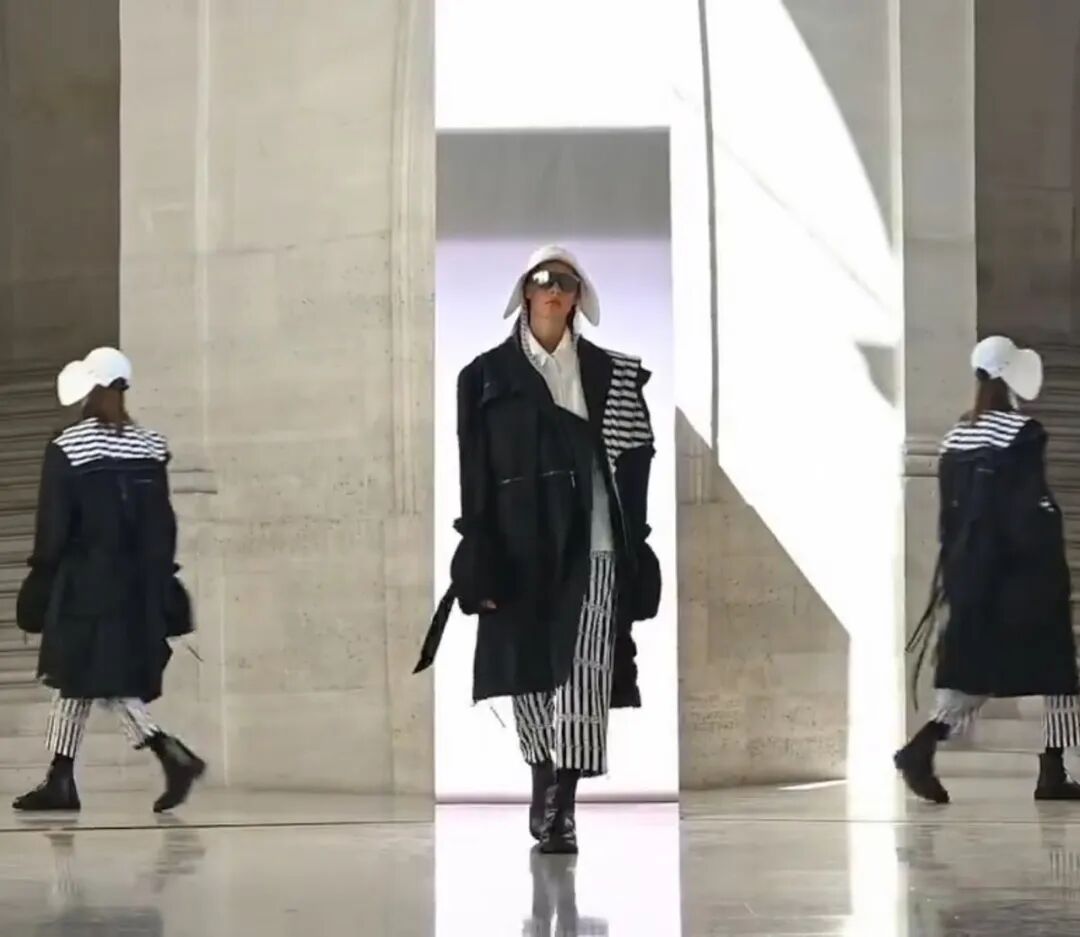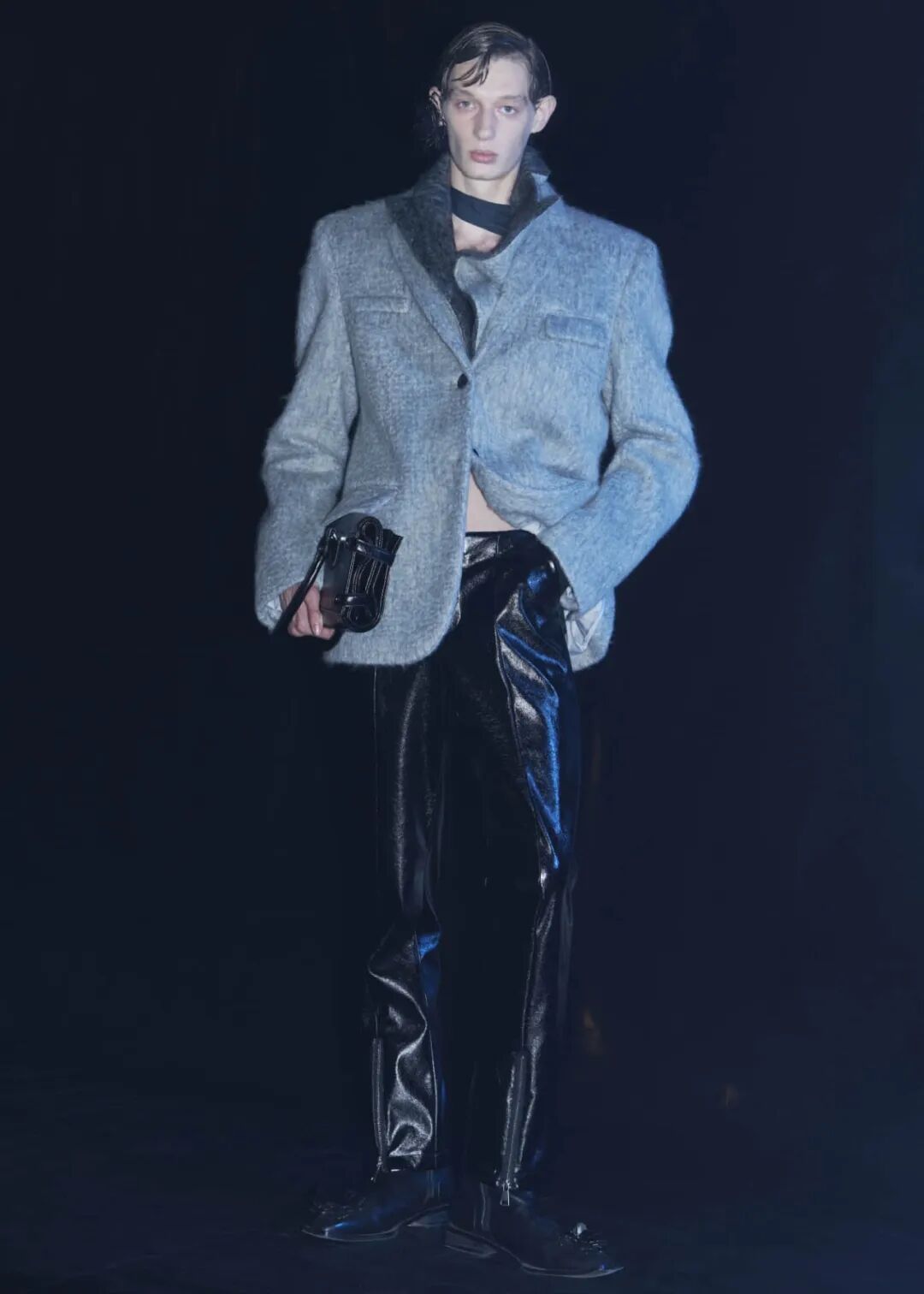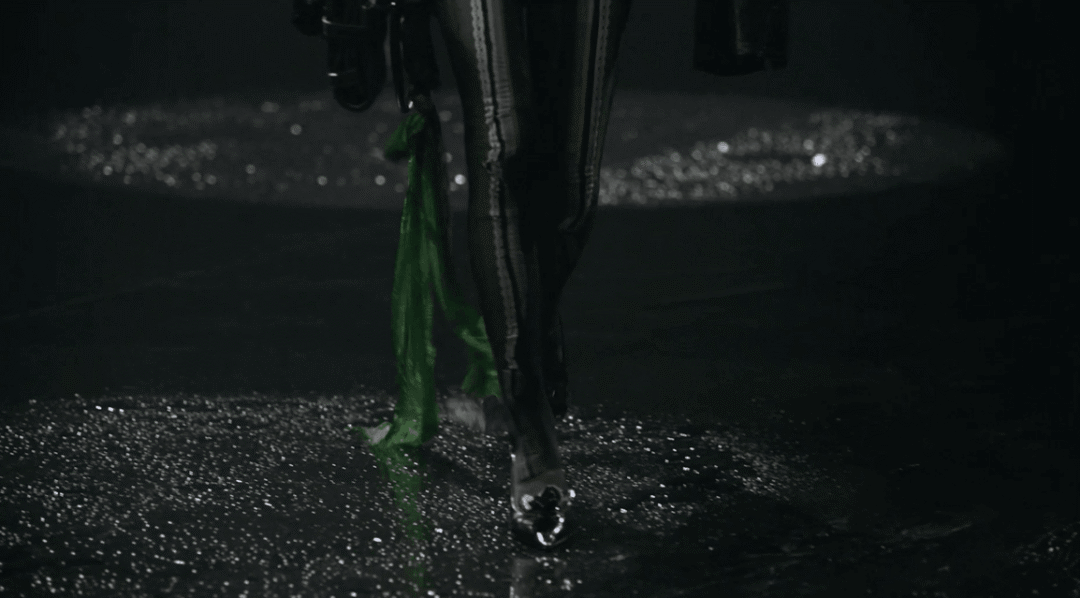 2022/23秋冬系列的成衣秀场,凝结着水珠的地面,整体黑色的布景和集中的灯光,好像空气也变的湿润了,刚刚经历过阵雨的洗礼,兵荒马乱的气息还没有完全褪去。而“疫情”下的我们也都或多或少的经历了这一场兵荒马乱。