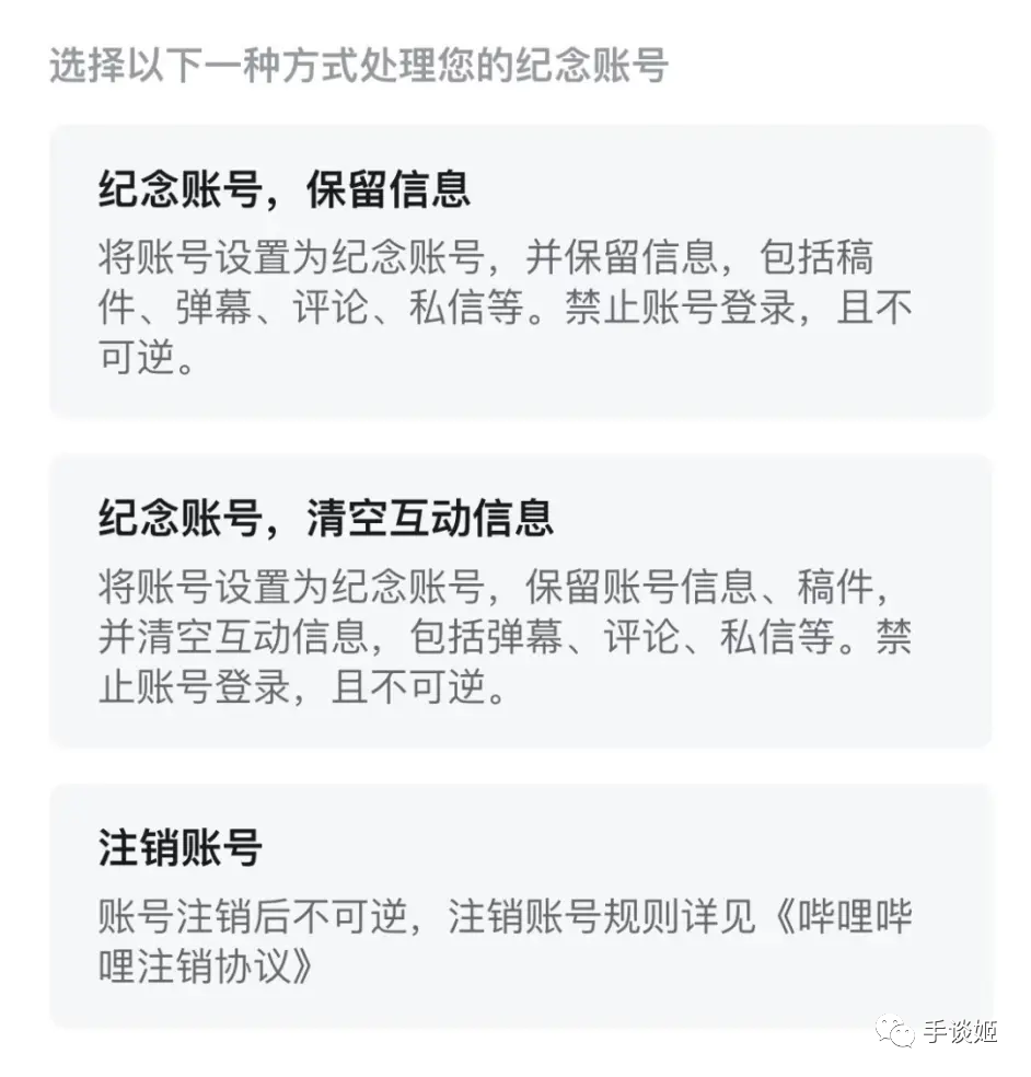 估计是这一事件影响颇深,B站官方在近日追加了新功能,允许用户们提前设置,如果自己去世,自己的B站账号将会被如何处理。