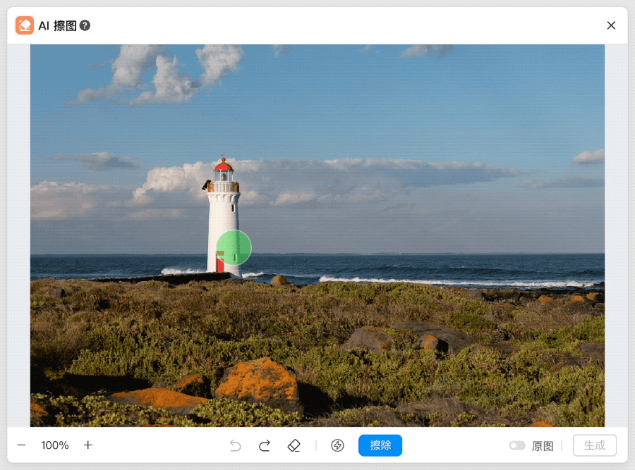 看名字就知道,能快速祛除图中无用元素的插件。操作也很简单,涂抹后稍等几秒就能擦除完成。