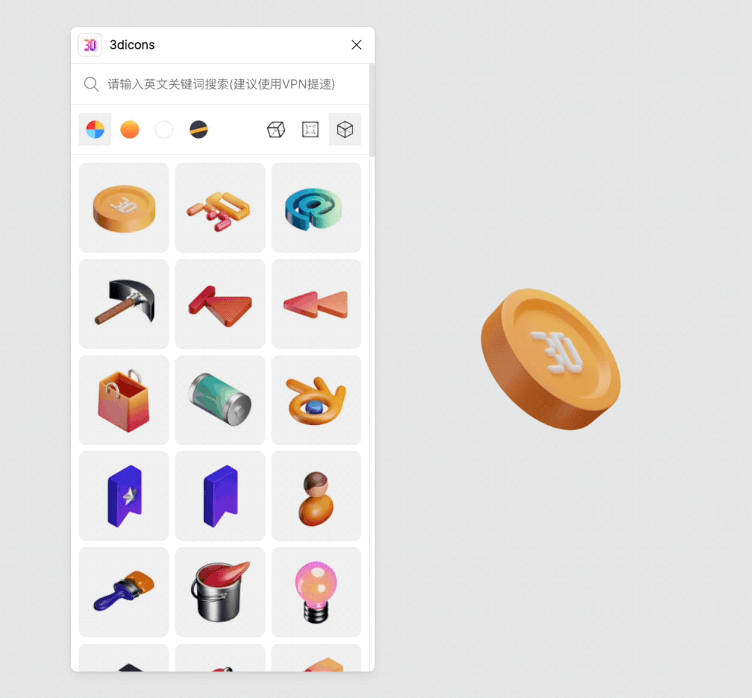 资源类插件最大的价值就是快速调用,避免在多个页面中来回切换,减少不必要的操作,最好在设计工具的画布内就能一键拖拽使用,尤其是图标。
