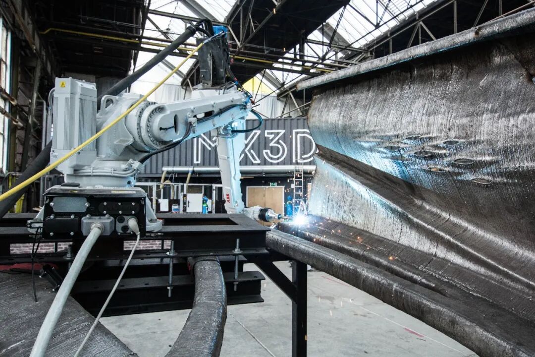桥梁长12.5米,宽6.3米,整体结构复杂。包含弧形栏杆在内,整个桥梁均由不锈钢材料3D打印而成,成功展示了机器人3D打印技术在未来建筑领域所蕴含的无限潜力。