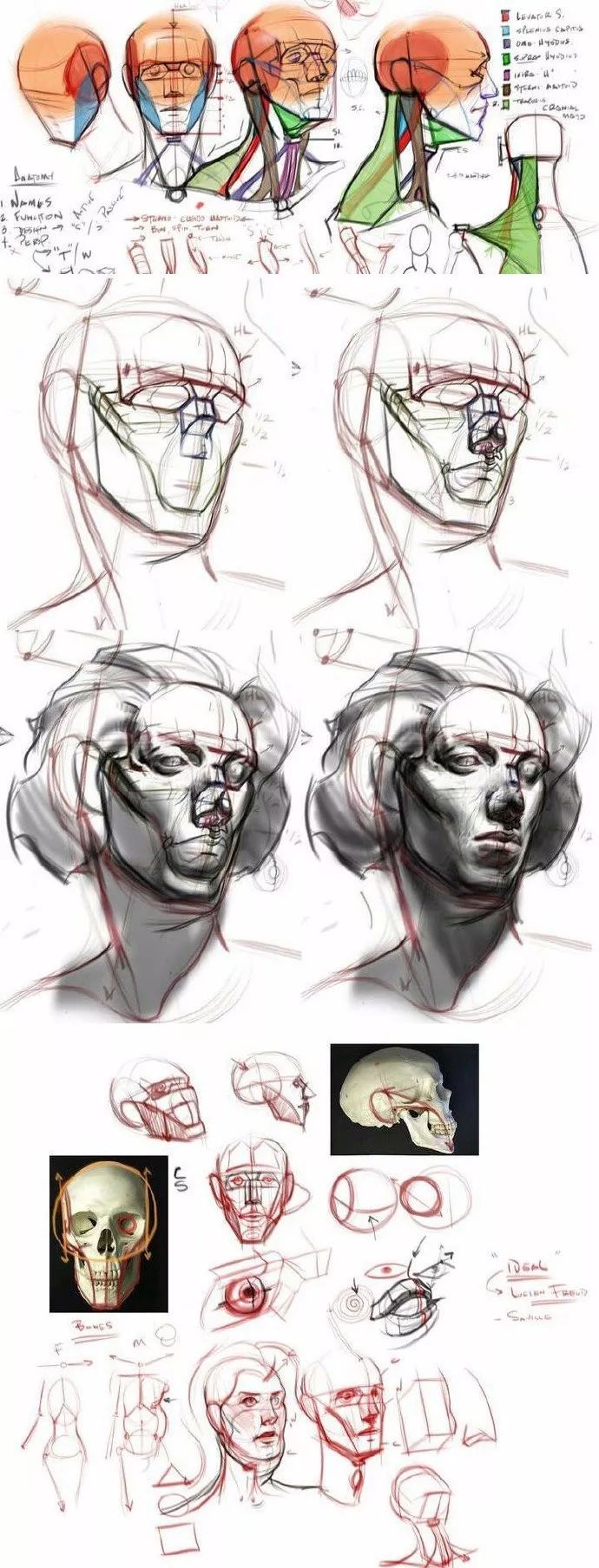 2.认识和了解头部基本形体结构(比例 透视解剖)