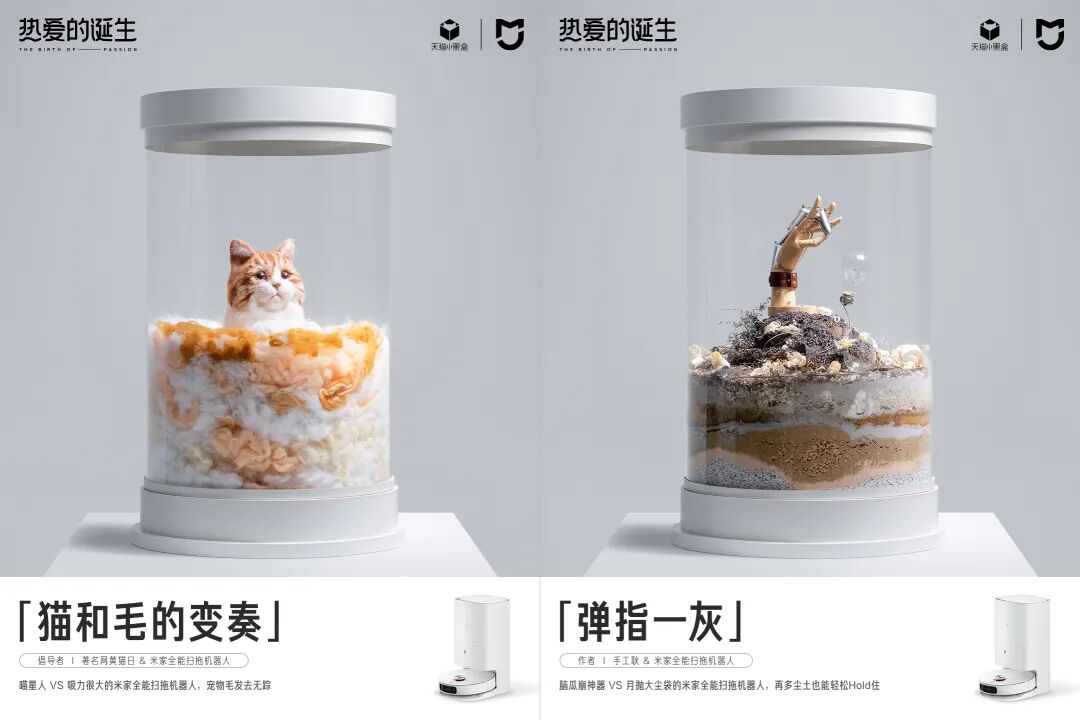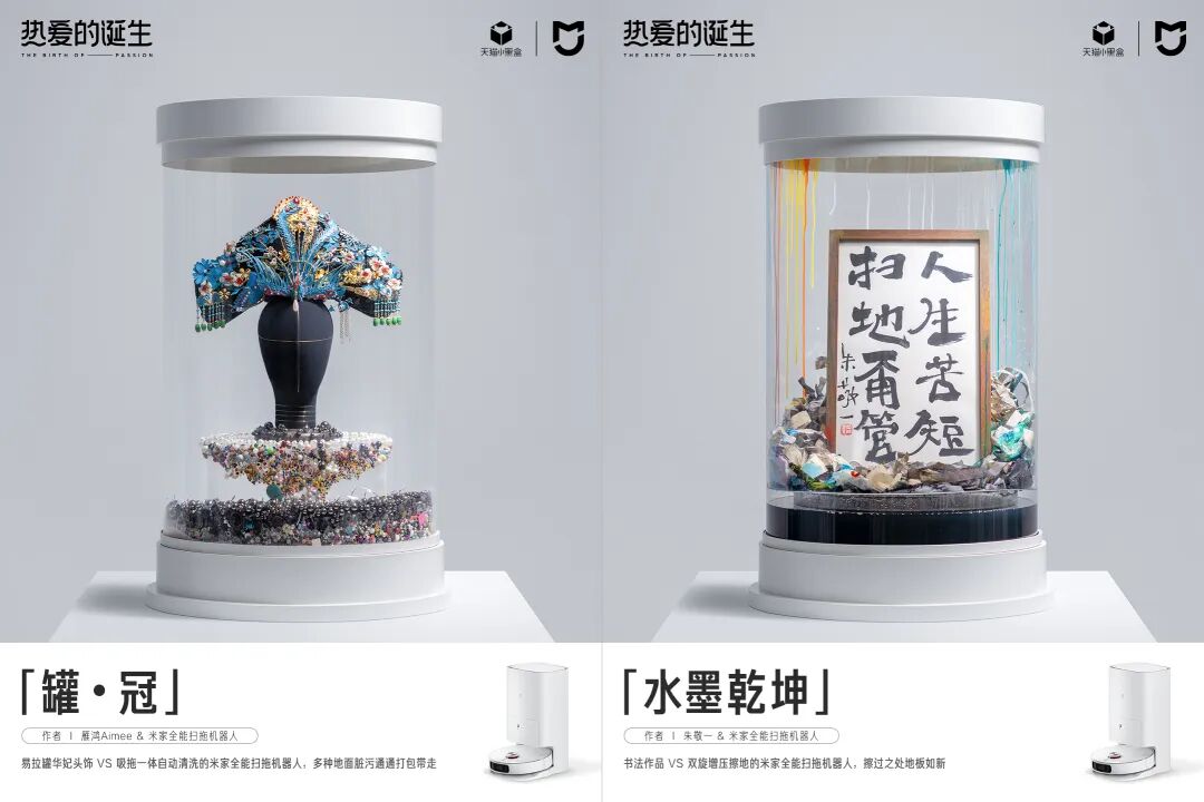 因此,小米联合了四位行业达人,把他们家里的垃圾变成了4个垃圾艺术品进行展出。用艺术赋予产品温度,消费者就会和产品之间建立情感链接,并将对生活的热爱转化成对产品的热爱。这正是小米在米家全能扫拖机器人营销上的底层逻辑。 由此,消费者也会潜移默化地形成“艺术的诞生,离不开米家全能扫拖机器人”的认知记忆,品牌也就有了差异化的市场占位。