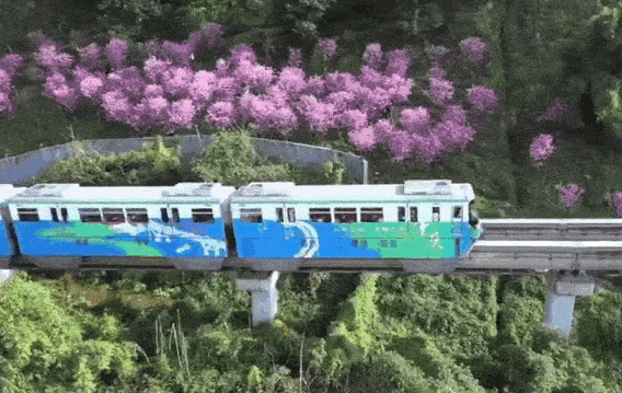 “旅行于春暖花开的城市之中,这是重庆单轨带给居民和游客的乐趣”。每年的二三月份,是美人梅盛开的花期,也是重庆地铁2号线出圈的时节。自18年起,重庆开始引种开花乔木取代单一常绿乔木,并以规模化种植方式取代零星化种植。今年,重庆又在更多的轨道列车沿线栽种了美人梅、樱花等多种植物品种,开往春天的地铁成为了重庆独具特色的风景线和靓丽的城市名片。搭乘地上铁,享受用心的城市绿化带来的自然馈赠,每一次通勤都成为了一场限定的浪漫旅行。