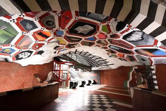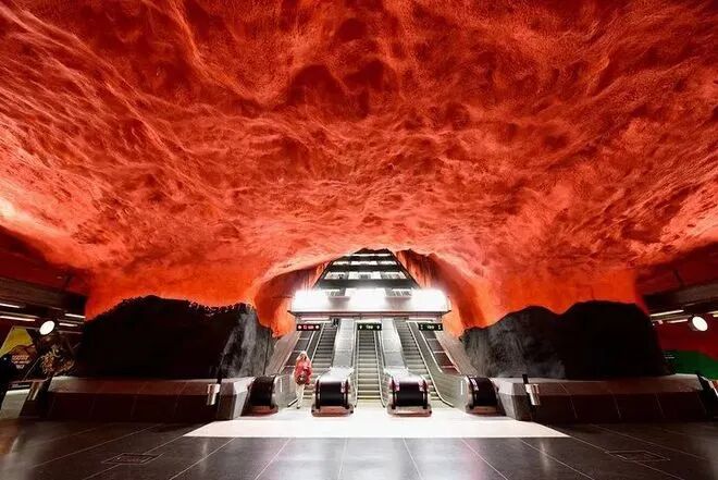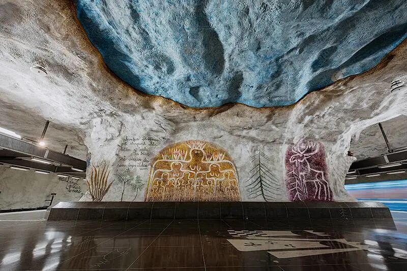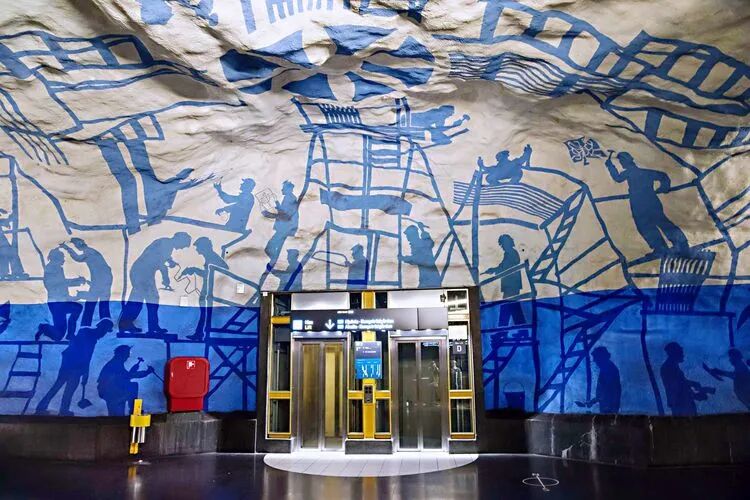 斯德哥尔摩的地铁系统被称为世界上最长的艺术画廊,其 100 个车站中有 90 多个车站装饰有超过 150 位不同艺术家的雕塑、岩层、马赛克、绘画、装置、版画和浮雕作品,创作主题涉及历史文化、社会议题、科技探索、艺术表现等多个领域。