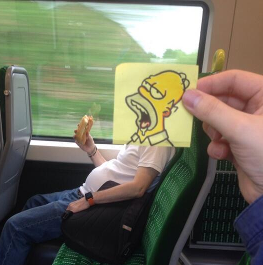 ▲Jones通勤时将手绘的卡通头像叠加到乘客身上,图源Twitter