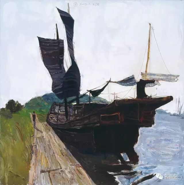 戴士和《太湖渔船》布面油画-80x80cm,-2013年