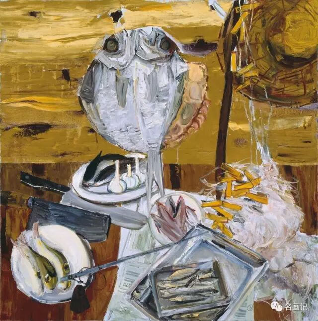 戴士和《立鱼干、鲜河豚》布面油画 100x100cm, 2014年