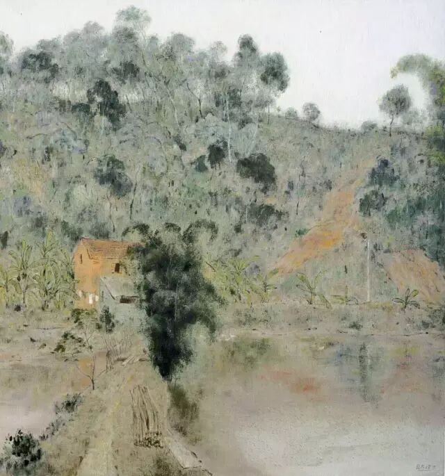 戴士和《阳朔遇龙河 山麓》布面油画 80x60cm,2013年