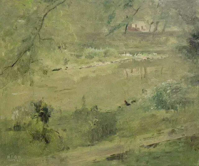 戴士和《石壕村村口》布面油画 80x80cm 2015年