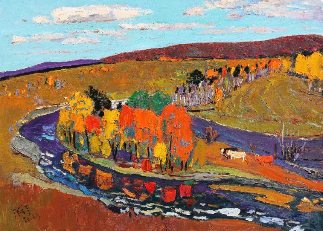 戴士和《旅顺 柏岚子岸边》布面油画 100x110cm,2014年