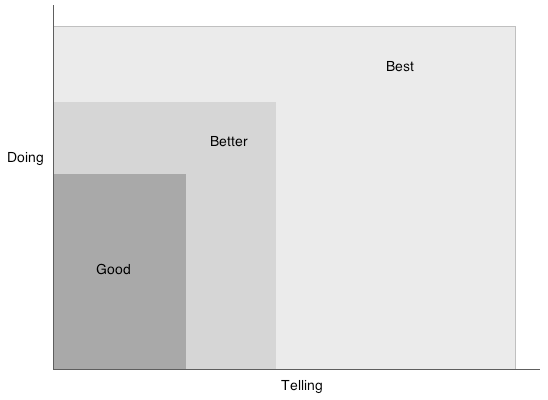 如果你在第一类的,你可能需要退一步,重新审视你已经在做的工作。对于高水平执行者来说,这是一个常见的盲点!他们早就忘记了自己知道多少。他们认为他们没有做任何有趣的事情,因为他们认为每个人都应该知道他们所知道的。当你身边的人都具有相似或更高的技能水平时,这种影响还会加剧。随着你成为一名专家,你对质量的要求越来越高,忘记了并不是每个人都知道你知道的一切。