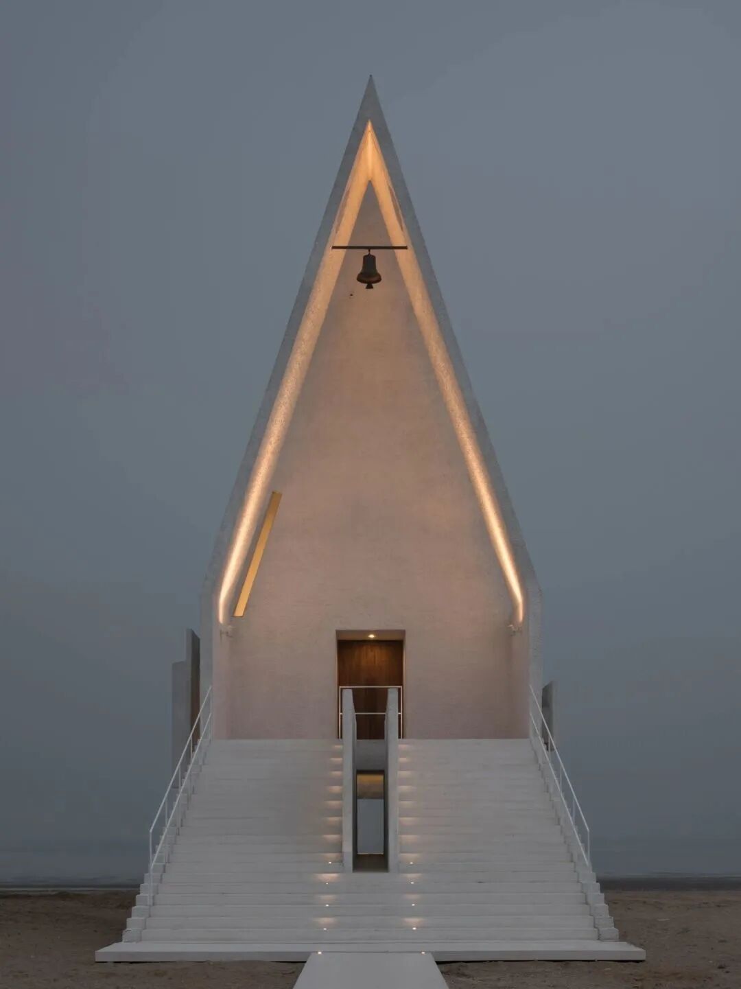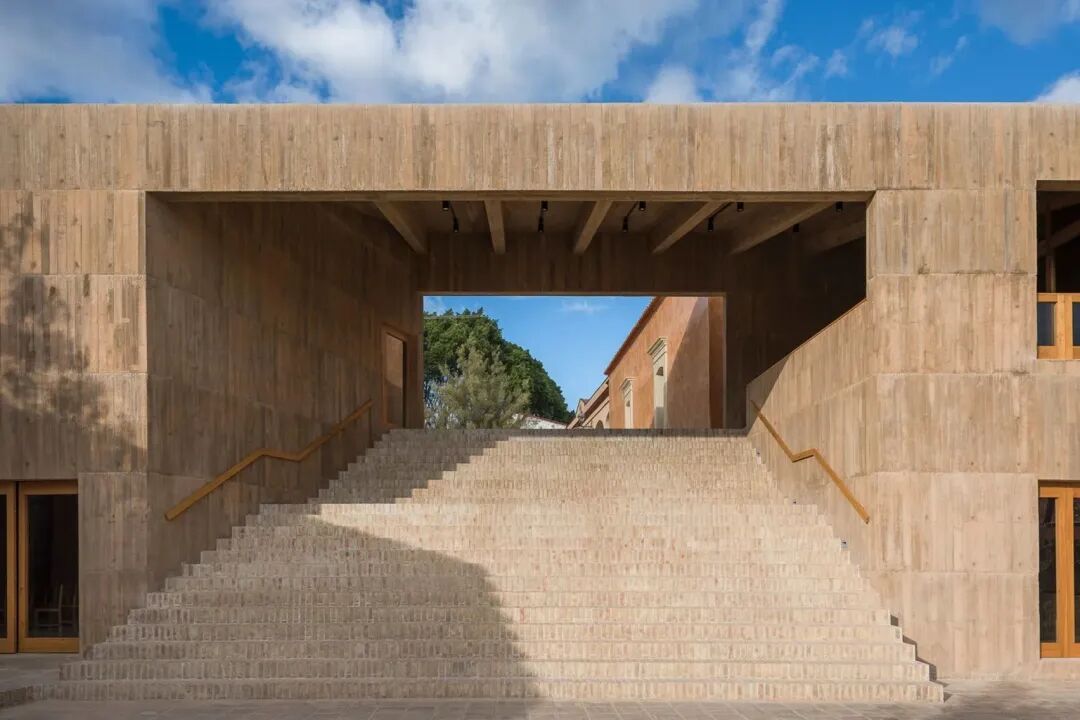 它有着非常强烈的引导性,指引你爬梯进入楼梯终端的空间,它也有着一定的室内外空间的过渡作用,拉长人们进入建筑的时间,调整人们进入建筑的状态。