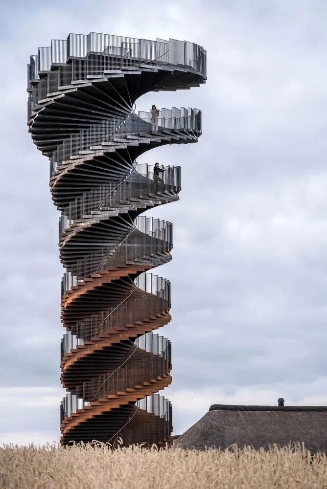 直接以楼梯作为整个建筑造型元素的案例也不少,一部分是以楼梯为核心构建的塔筑物,供人攀登,远眺,一部分是将楼梯与建筑功能结合,造型中将楼梯放大,作为建筑造型的亮点。
