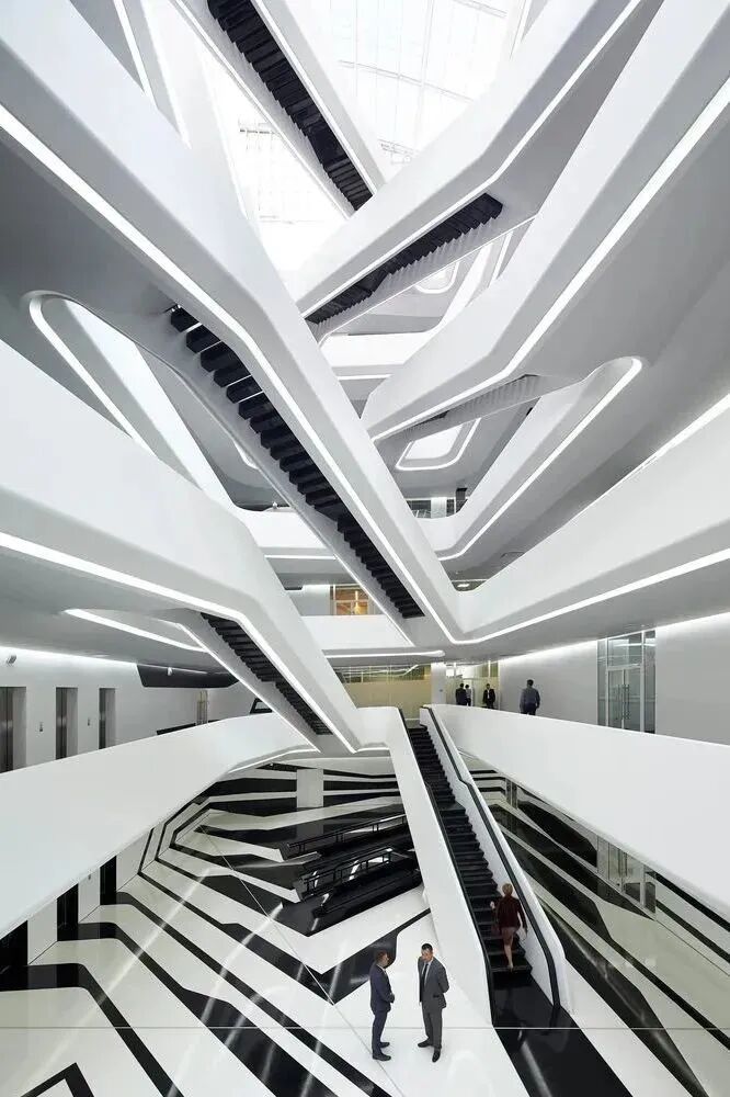 有创意的楼梯设计能提升整个空间的气质。许多设计师将楼梯的设计与建造视为其建筑空间塑造的重点。将其搭配不同的颜色、光线、材料,让楼梯成为空间中的大型艺术装置。它可能是在入口,可能是在中庭,也可能是在屋顶等等。