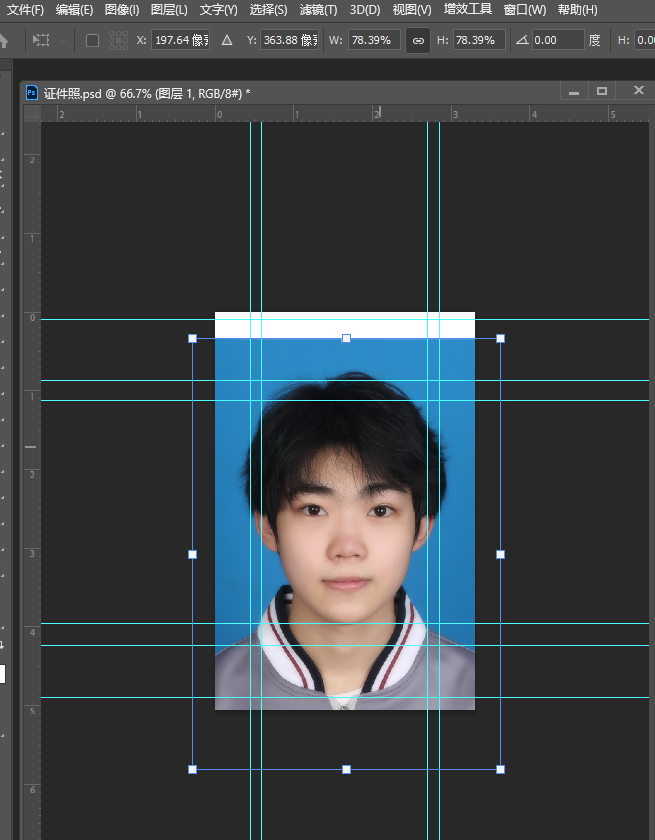 Ctrl+T缩放图像至合适大小,这时头部尺寸已符合上述要求;