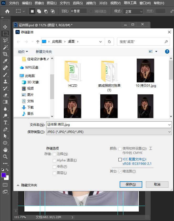 然后将证件照存储为副本,保存类型中选择JPEG格式;