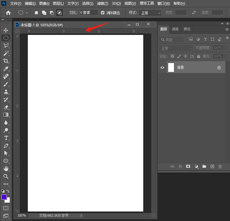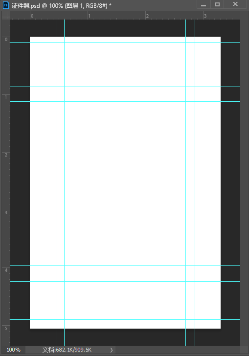 完成点击创建后如下,快捷键Ctrl+R将标尺显示,这可以帮助我们按上述尺寸要求标出参考线;