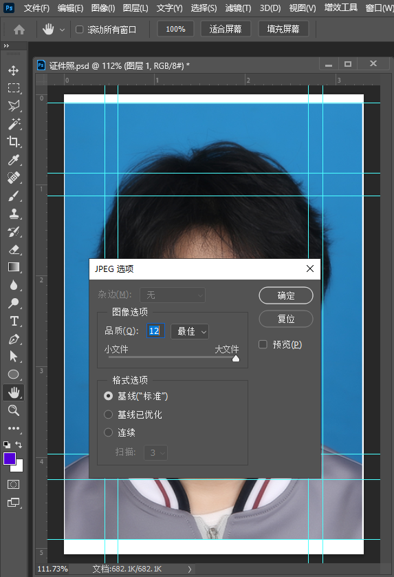 那么我们按分辨率为300像素/英寸,来调整证件照片
