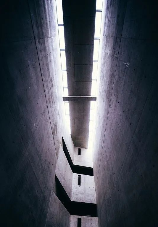 博物馆中最具震撼力量的部分位于流线的终端,此处是一个极端高耸而狭窄的走廊,光线从高耸顶部的缝隙中投射下来,透露出渺茫的希望。