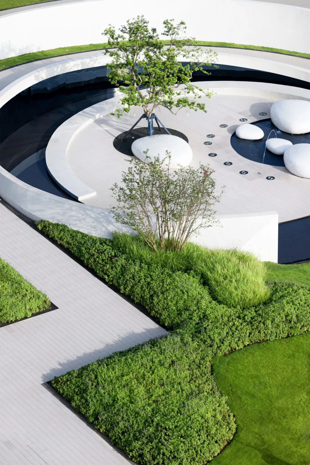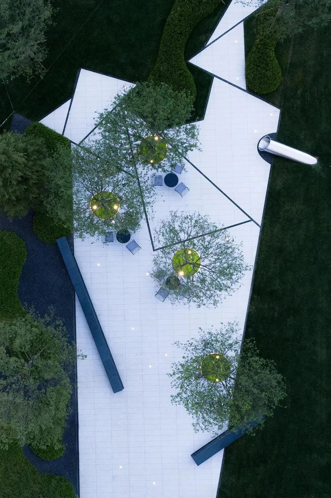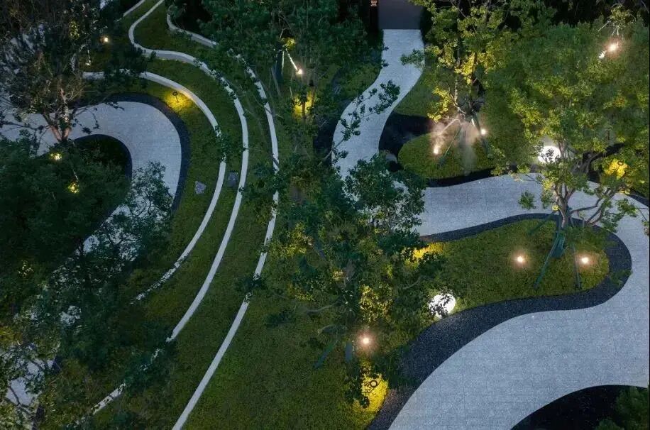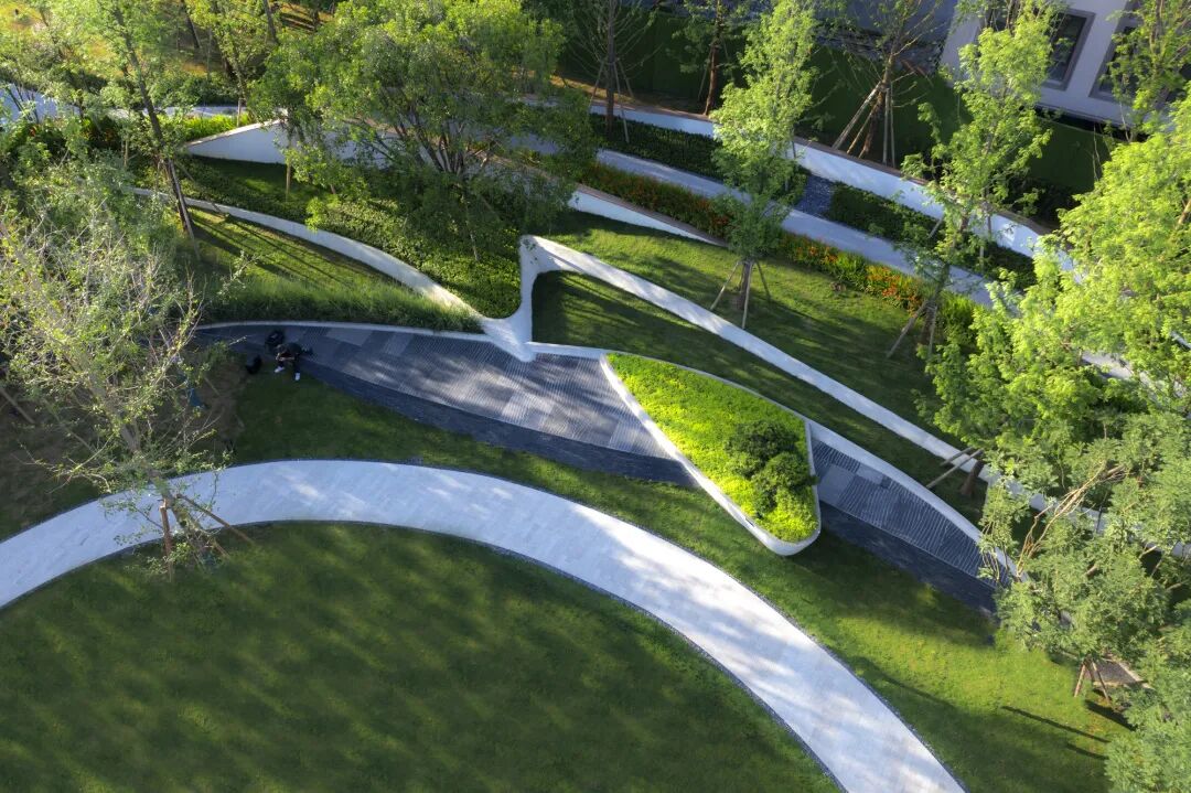 如果俯瞰景观空间,园路会让整个空间呈现明显的分割状态。