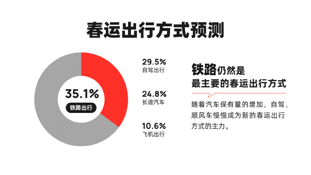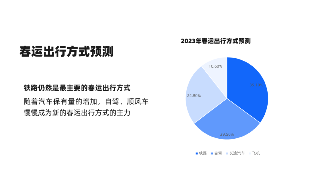 结合文案来看,这页想突出的重点是「铁路出行占比大」这件事。那我们可以换一种表现形式~