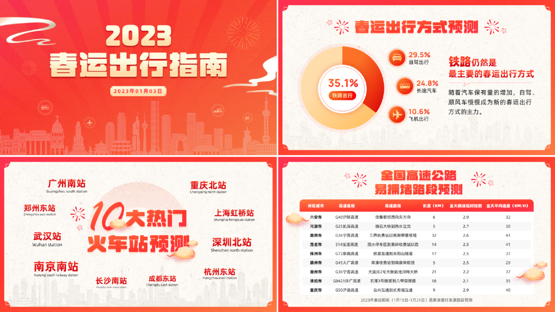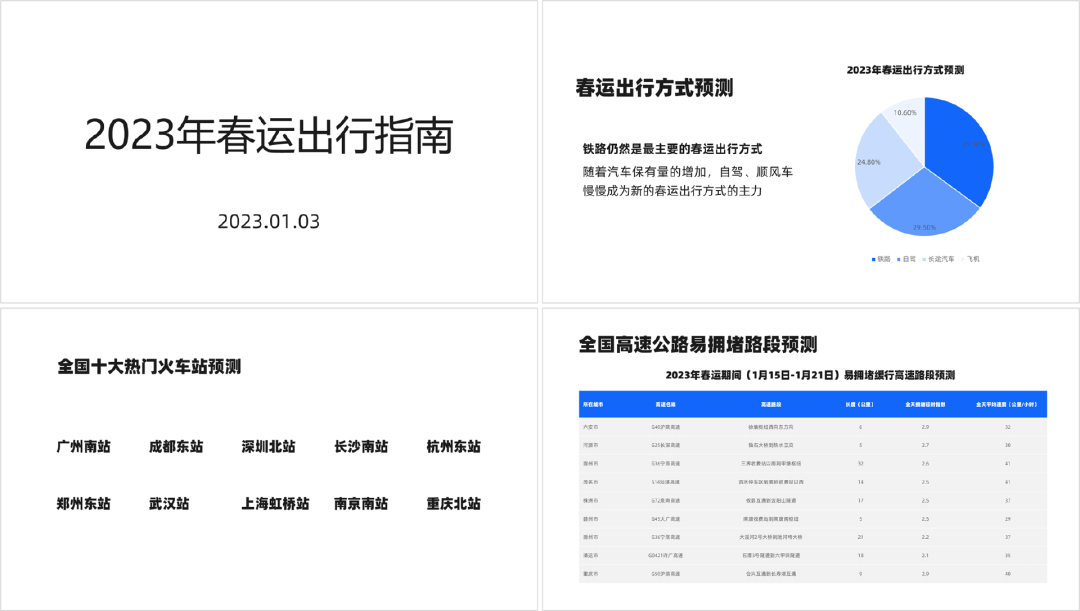 这是一份关于「春运」的PPT。文案很精炼,排版也没有太大的难度。