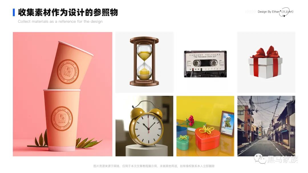 在做2.5D学习进阶前,首先要做的就是收集身边自己感兴趣的小物件。日常素材收集、个人设计资源库是设计师最关键的资源整合之一,以人们日常生活为取材中心的设计,能更好的服务于现实生活中的用户。当设计的量越来越大之后,设计创作的灵感就会越来越多,可以通过以往的设计进行重新组合、变形、创作,这也是我们在设计中常用的设计的表现方法。