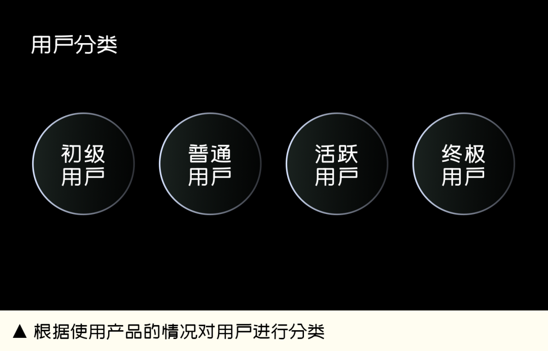 根据用户在使用产品过程中遇到的问题,我们可以将用户分为4个类型:初级用户、普通用户、活跃用户和终极用户。