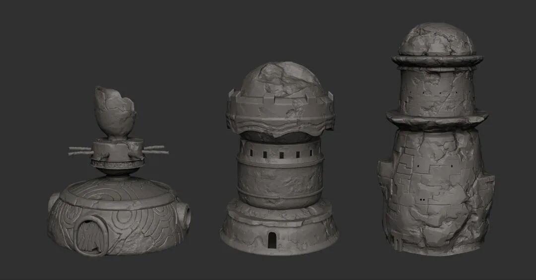 在 Blender 中制作完成之后导入 ZBrush 进行雕刻,来完善形状并添加一些细节。