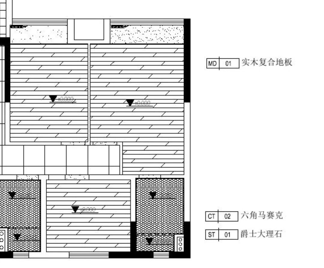 c、不同材质或同材不同色的区域区分是否清楚完整:通常不同材质的区域会用不同的填充图案来区分,注意同材不同色的位置通常可以通过不同的填充图案或同图案不同比例来区分。