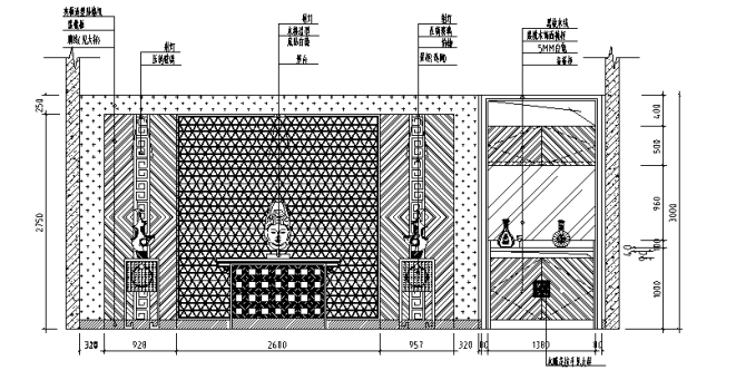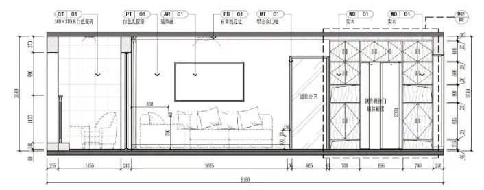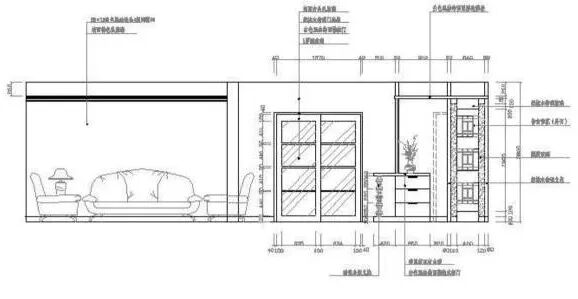 b、立面尺寸标注是否与平面图保持一致:建议立面标注只标注造型尺寸,因为所谓标的越多,可能错的越多,其他图纸能表达清楚的内容,就不要重复标注,一旦标注错误,不如不标注。