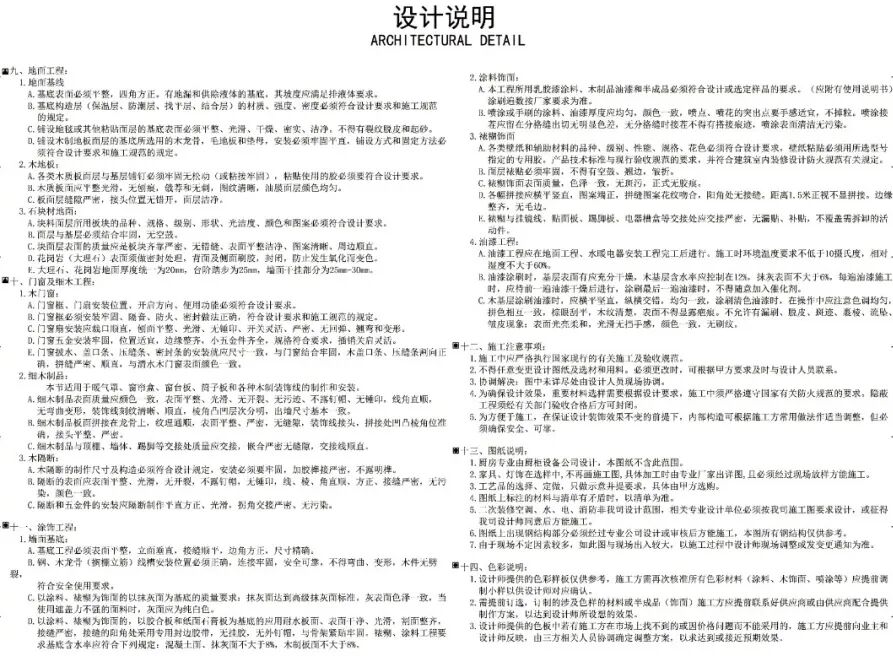 关于设计说明的内容,就比较繁多,然而同类型的项目又大体相似,所以在自审图纸时,通常需着重注意工程概况内容、精装修设计范围、各类图例说明、材料与工艺的说明、各类规范要求等。