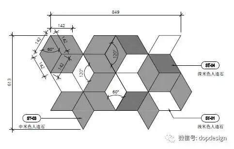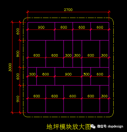 b、地坪铺贴的模块示意图(根据地面拼花的样式决定是否需要)