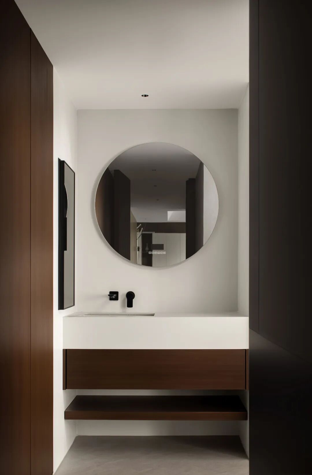 通顶结构,携高品质触感表达设计的体贴性,碰撞虚实光影,讲述艺术创造的奇妙感与灵动感,将人的视线引向另一场域,委婉又直接。置入圆形镜面,优化一隅光线,晨起日落时,呵护清洁动态,步步相连,互不干扰。