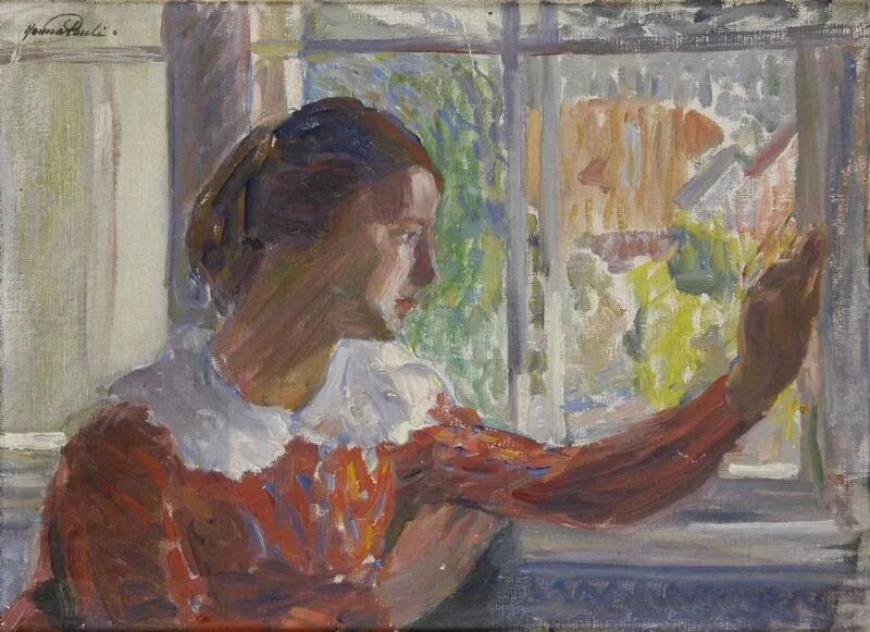 保利描述了这幅肖像画:"我们当时没有大的债务。画室非常寒冷和潮湿;我的芬兰朋友在我画她的时候不得不戴着手套坐着。在卧室里,湿气顺着墙壁流下来,屋顶上只有一个小天窗。生活的物质方面对我们的困扰很小......此外,我的朋友和我几乎总是穿着拖鞋蹒跚而行;这样可以节省鞋皮,而且非常舒适"。