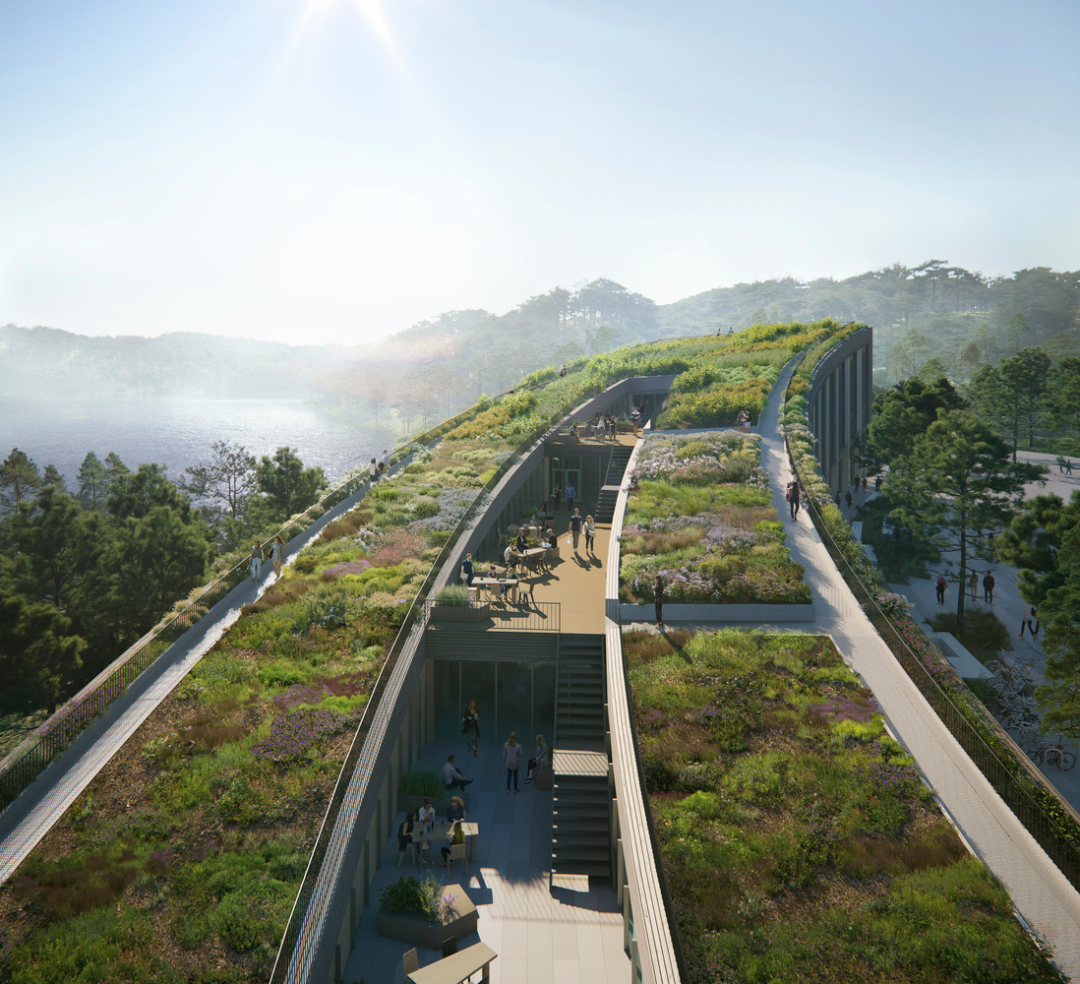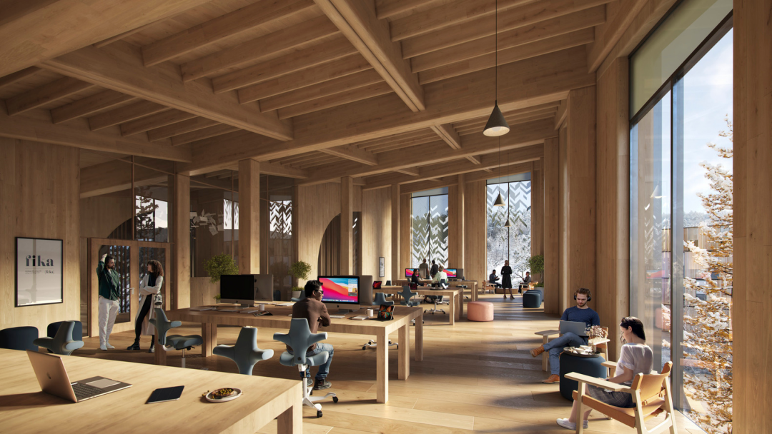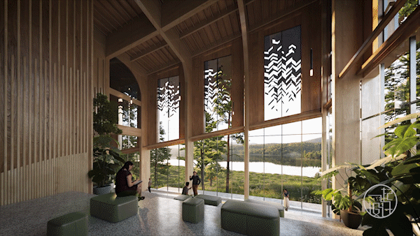 它的内部规划包括餐厅、咖啡厅、商店、活动空间、联合办公和健身房。优先考虑木材和石材作为主要建筑材料,取自当地的原材料也具有高强度和低碳排放的优点。