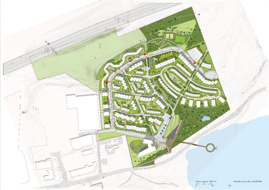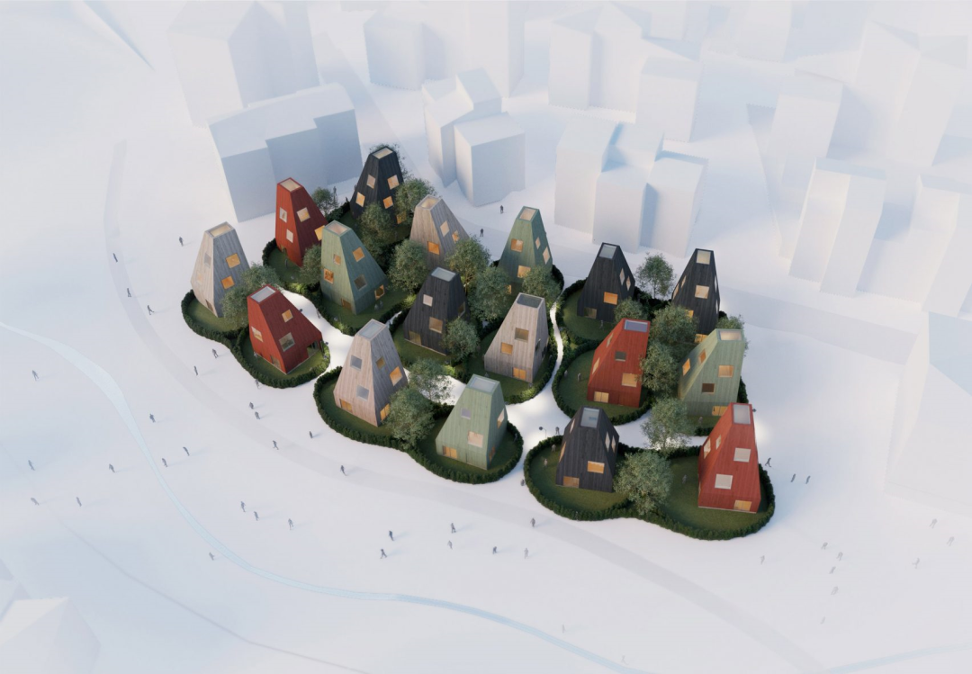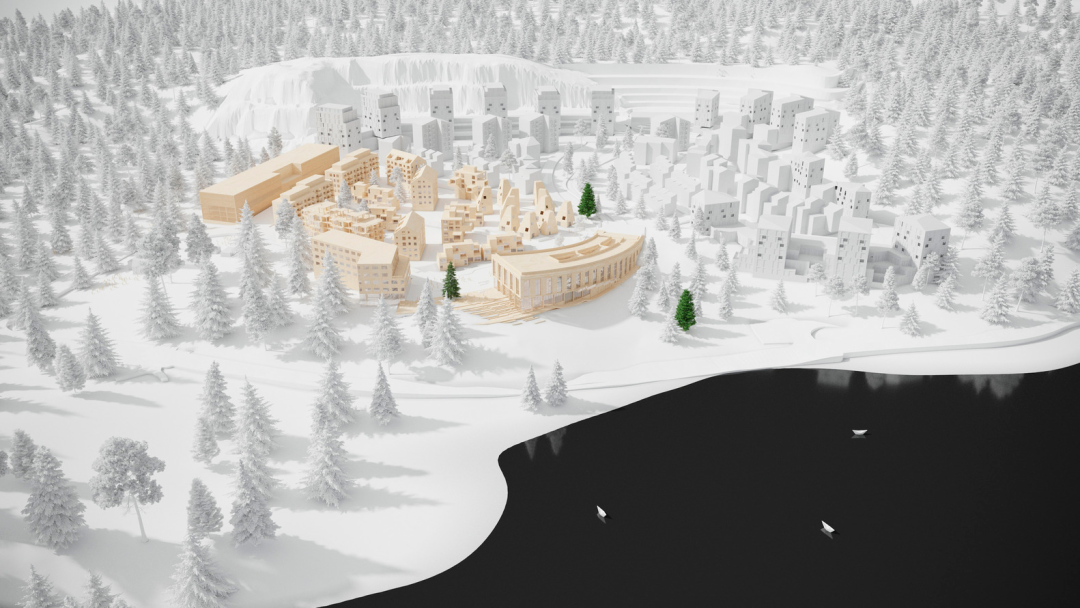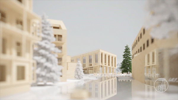 在已经放出的设计概念中,地块朝南的倾斜山岩地带将被重新设计,改造成与景观融为一体的建筑群,可容纳超过 70,000 ㎡的木制住宅,其中 10,000 ㎡专门用于幼儿园和老年公寓。