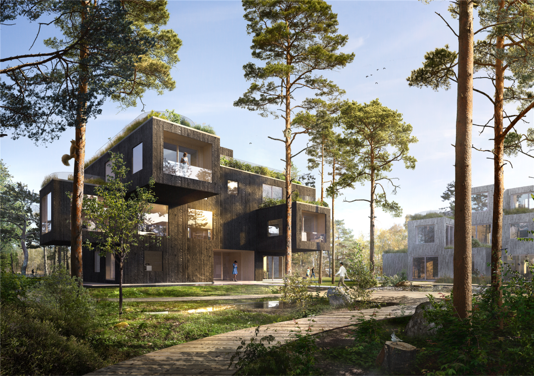Tham & Videgård Arkitekter在开发该方案时着眼于花园城市的特征——一种由 Ebenezer Howard 提出的城市规划方法,它的特点是拥有被绿地包围的自给自足的绿色社区。