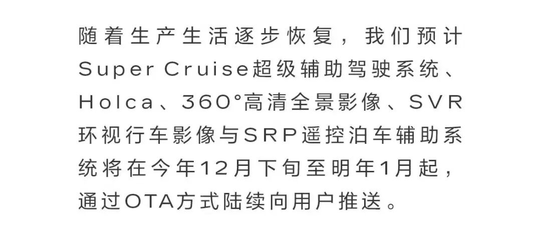这份福利的主要内容是,今年12月底前交付的大定用户可以额外享受5年的保养福利。作为差不多的等价交换,锐歌搭载的Super Cruise辅助驾驶系统等多个功能将暂时不能使用。