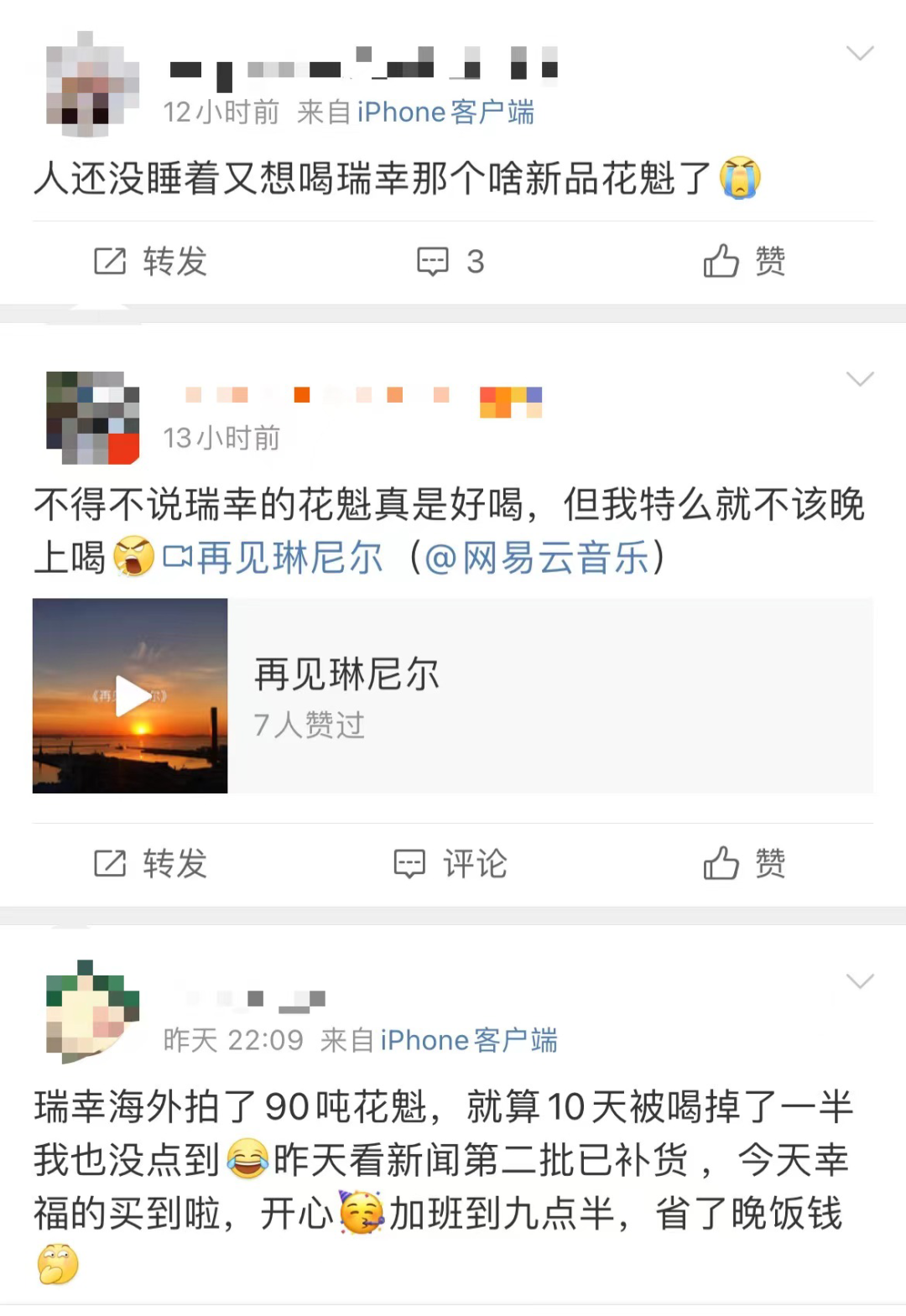 与当时生椰系列光速售罄的情景类似,瑞幸这次采购了90多吨豆子,10天就被喝掉近一半,真是“喝一杯少一杯”了。