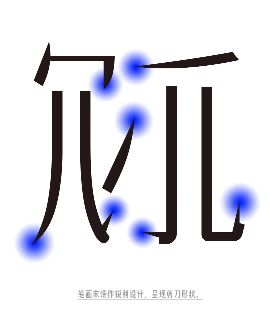 “燕尾宋”的命名,来源于笔画尾部的形状设计,给人以最直观的印象。笔画尾部锋利的棱角与流畅的曲线完美融合,仿佛将字体的一部分重量“剪掉”,让整体字形有一种轻盈的美感。